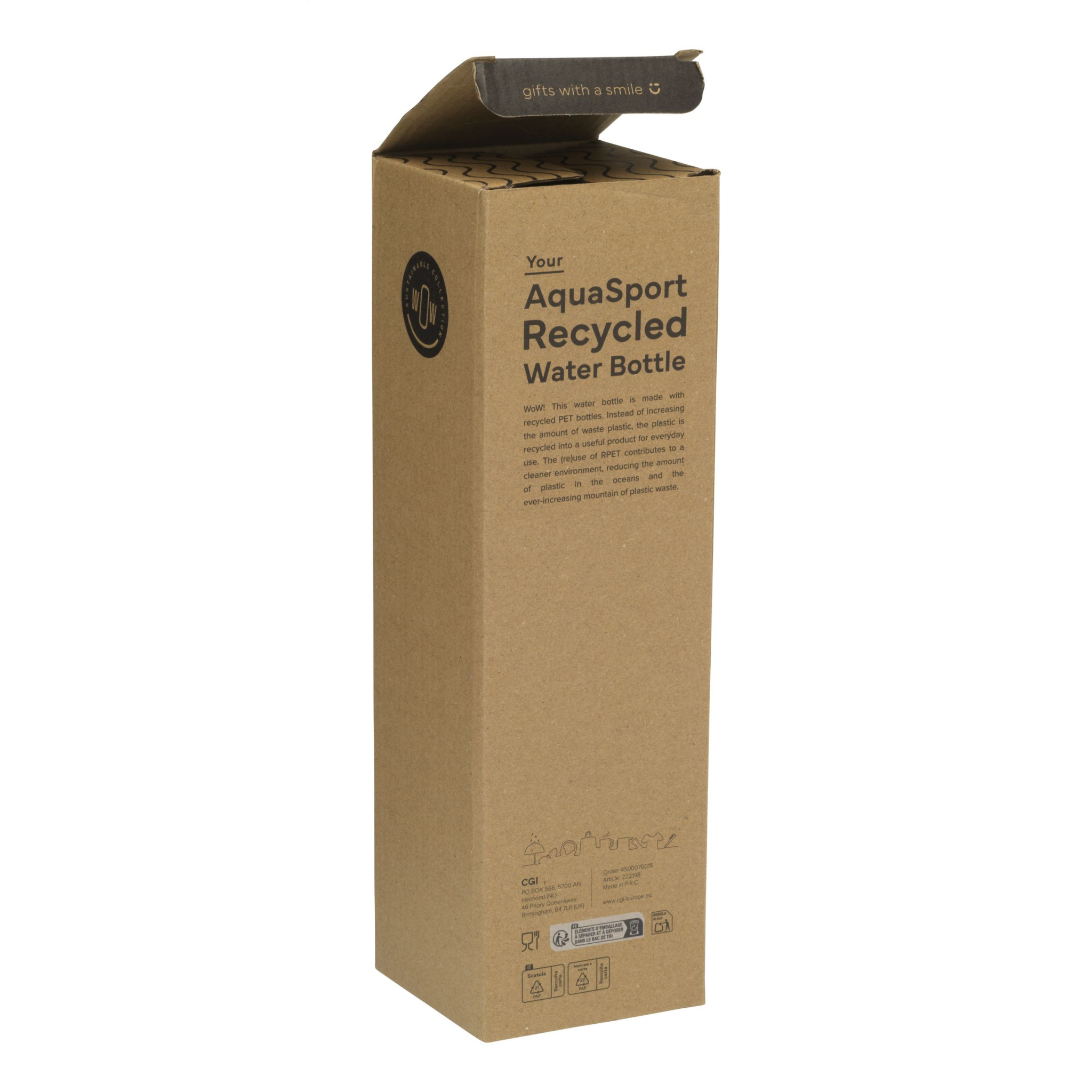 Vau! Taaskasutatud PET-st valmistatud funktsionaalne veepudel. Keerataval korgil on kõrrega joogitila, läbipaistev kaitsekork lekete ja mustuse eest ning lukustussüsteem. Ühe käega juhtimine ja lihtne kande-/randmeaasas kanda. Sisu kuvamisega ml-des ja untsides. See pudel sobib külmade jookide jaoks ja sobib ideaalselt kasutamiseks sporditegevuse ajal. Ei ole nõudepesumasinas pestav. Mahutavus 1000 ml. GRS-sertifikaadiga. Taaskasutatud materjal kokku: 66%. Iga toode tarnitakse eraldi pruunis pappkarbis.