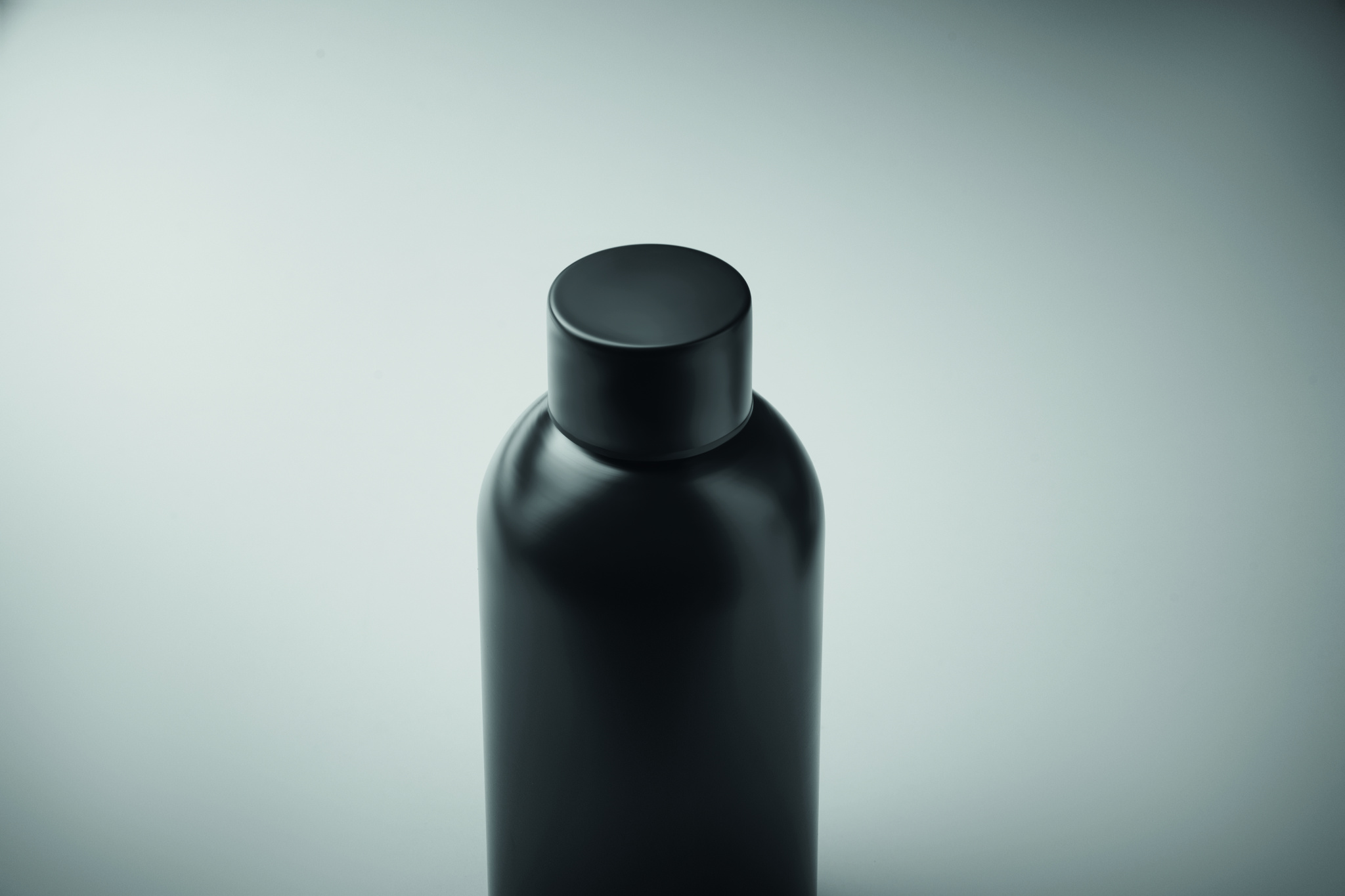 Must taaskasutatud roostevabast terasest (90% taaskasutatud roostevabast terasest ja 10% roostevabast terasest) joogipudel. Lekkevaba. Mahutavus 500 ml.