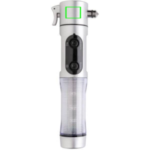 Avariivalgusti, hõbedane ABS-korpus, 1 valge LED ja 9 punast välklampi küljel, lõikur, aknapurustaja ja magnetalus auto katusele paigutamiseks.