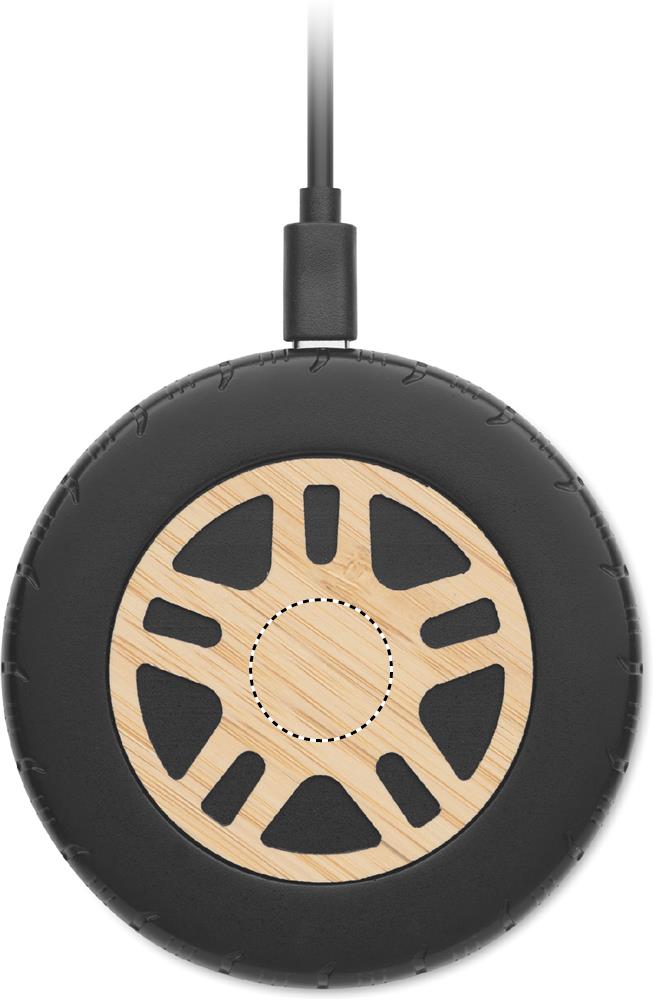 Traadita laadija 15 W taaskasutatud ABS-st ja bambusest pealispinnast. Autorehvi disain. Ühendage seade arvutiga, asetage nutitelefon sellele ja laske sellel laadida. Väljund: DC 9V/1.10A (15W) kiireks laadimiseks. Ühildub kõigi QI-toega seadmetega, nagu uusimad Androidid, iPhone® 8, X ja uuemad.