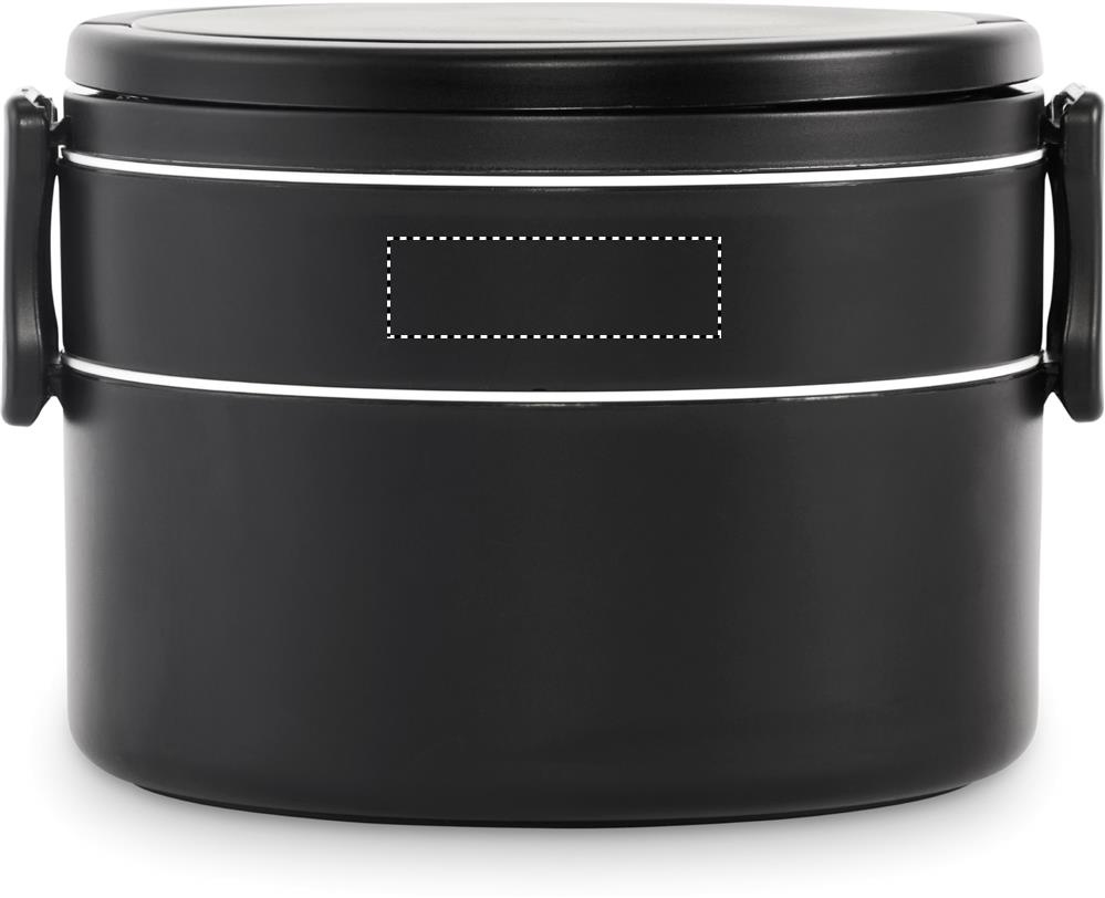 Kahetasandiline ümmargune lõunakarp PP-st, külgedelt klambriga sulguri ja käepidemetega. Komplektis kaaned. Mahutavus 250 ml ülevalt, 700 ml alt.