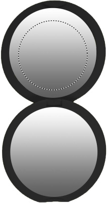 Kahepoolne kummeeritud viimistlusega kompaktpeegel, suurendus- ja standardpeegliga.