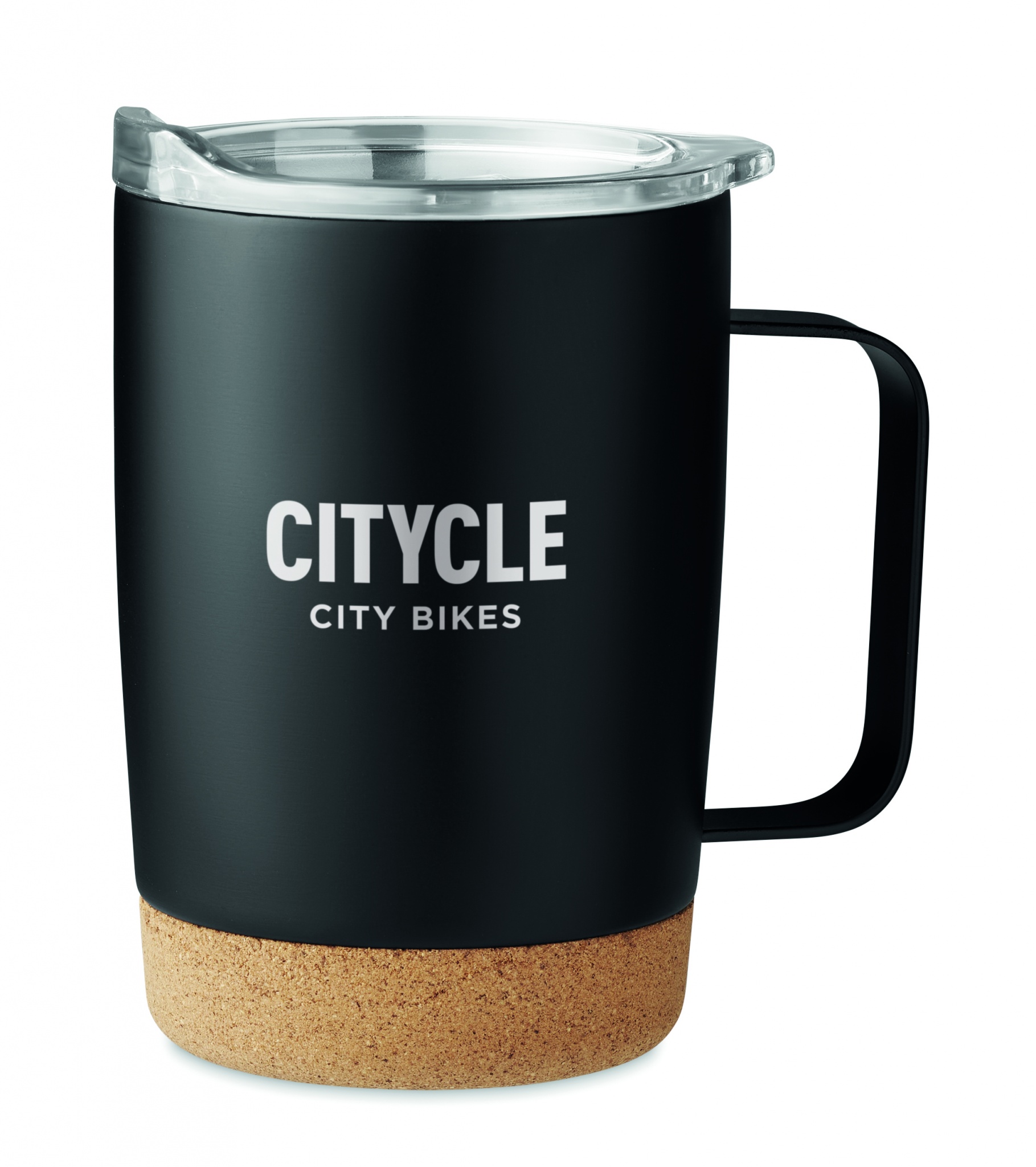 Kaheseinaline roostevabast terasest kruus korgist põhja ja libiseva lonksuava kaanega. Mahutavus: 300 ml. Kork on 100% looduslik materjal. Selle struktuurse olemuse ja pinna poorsuse tõttu võib lõpptulemus eseme kohta esineda kõrvalekaldeid.