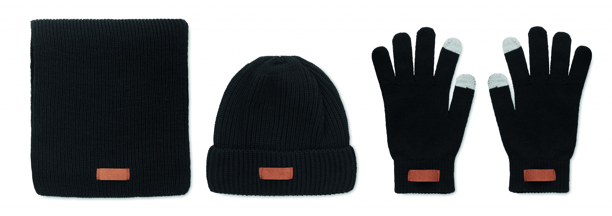 Logo trade firmakingi pilt: Talvekomplekt taaskasutatud materjalist, kindad, müts ja sall