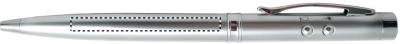 Multifunktsionaalne hõbedane pliiats. Sinise tindi täiteaine, valge LED-tuli, punane laserkursor. Kaasas 3 akut. Esitatakse puidust karbis. II ohutusklass.