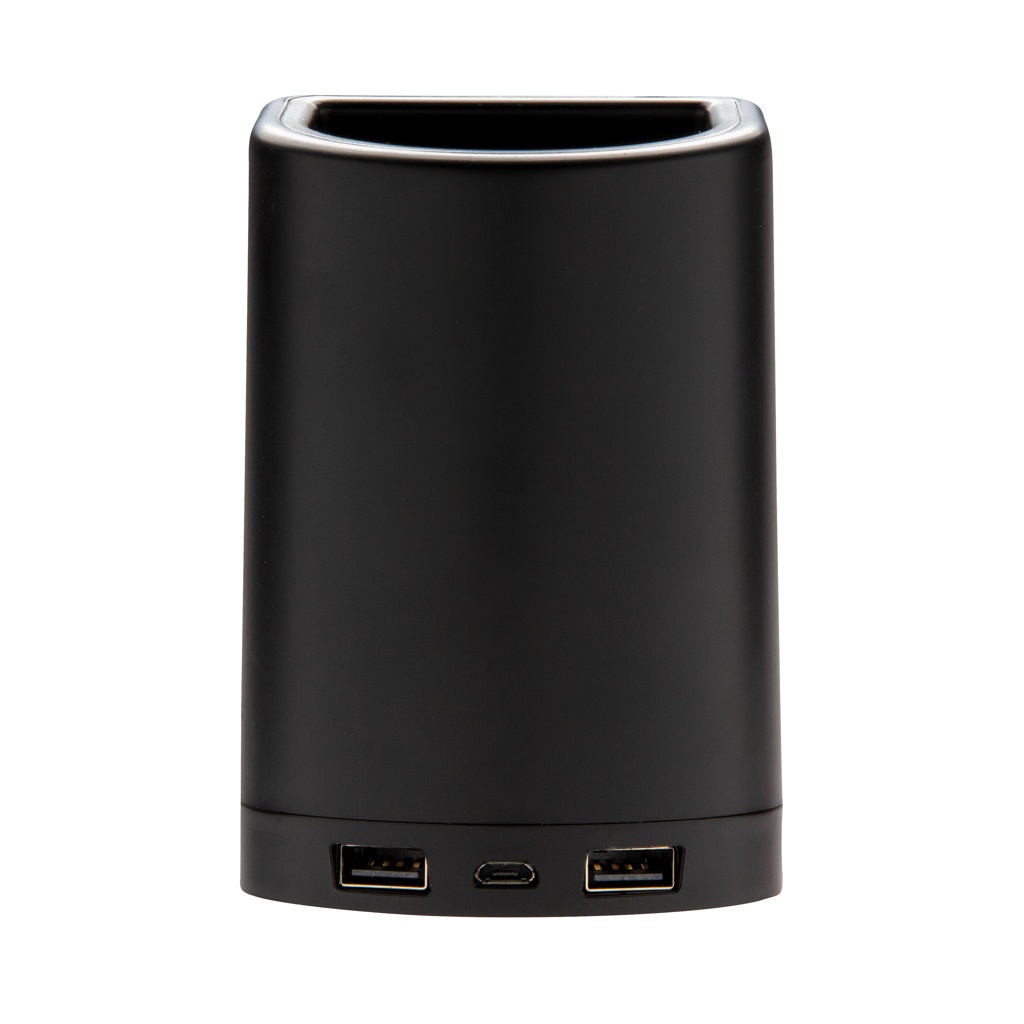 Laadige oma mobiilseadmeid ilma kaablit ühendamata selle ainulaadse kaks ühes lauatarvikuga. Lihtsalt asetage mobiiltelefon alusele ja oodake, kuni kuvatakse laadimisteade. Laadija võimaldab teil hoida ka kirjatarvete tarvikuid, nagu pastakad või pliiatsid. See laadija annab teile võimaluse kaunistada elemendil oma logoga, pärast ühendamist süttib see optimaalse särituse tagamiseks. Ühildub kõigi QI-toega seadmetega, nagu android uusima põlvkonna, iPhone 8 ja uuemad. Sisend: 5V/3A. Juhtmeta väljund: 5V/1A 5W. Kaasas 150 cm micro usb kaabel.