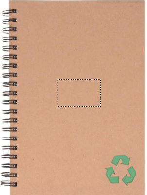 Taaskasutatud kartongist kaanega märkmik. Kahejuhtmeline. 140 joonega mineraalpaberilehte (70 lehte). Mineraalpaber on valmistatud kaltsiumkarbonaadist ja HDPE-st (polüetüleenvaigust), mida kasutatakse sideainena. See on veekindel ja rasvakindel.