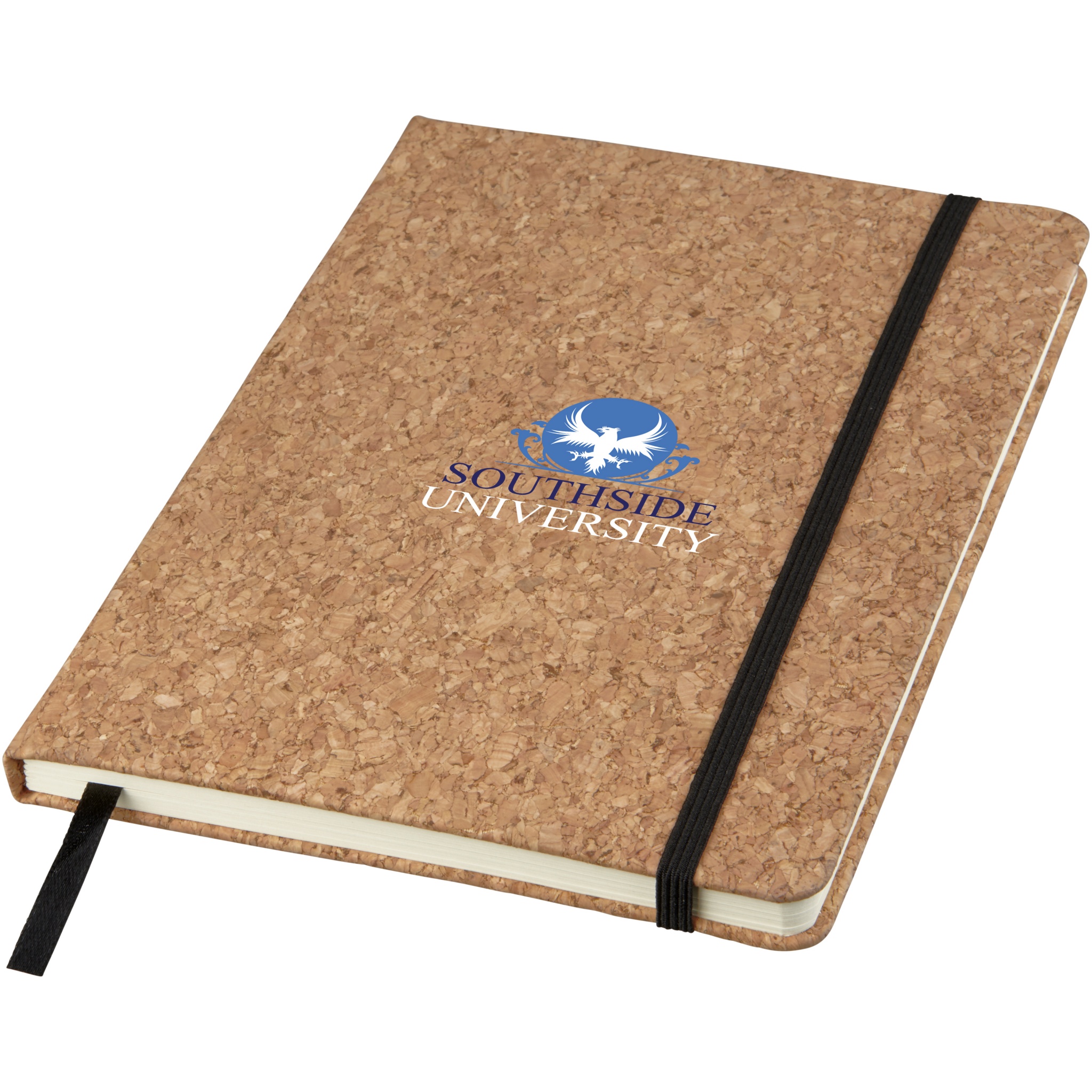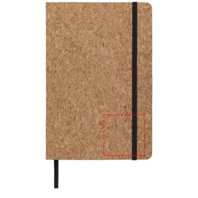 Korkkaane, musta kummiku ja paelaga A5-suuruses märkmik. Sisaldab 80 lehte 70g/m2 joonelist paberit.