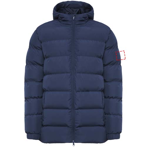 Polsterdatud spordiparka. Kapuuts tipuga. Ees tõmblukk koos sobiva tõmbaja ja lõuakaitsega. Elastsed kätised. Kaks lukuga küljetaskut. Sisemine vasak rinnatasku. Sisemine juurdepääs ümbertöötlemiseks. Eemaldatav etikett. Veekindel. Tuulekindel.