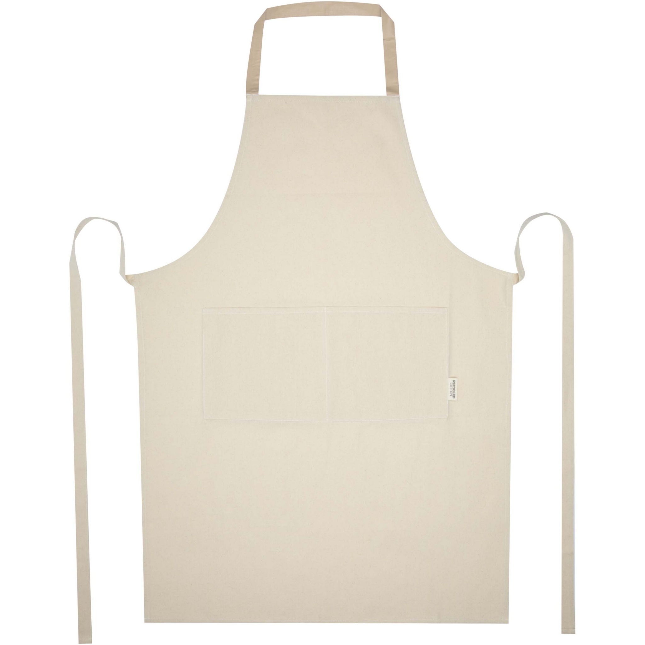 Nia põll on valmistatud 100% GRS sertifikaadiga 200 g/m² taaskasutatud puuvillast. Naturaalse puuvillase värvi ja kontrastse kaelasilmusega põll kaitseb teie riideid toiduvalmistamise ajal. Nia põllel on kaks kõrvuti asetsevat taskut, mille kombineeritud suurus on 45 x 20 cm, ja 1 meetri pikkune lipsukinnis, mis tagab teie köögis nii praktilisuse kui ka stiilsuse.