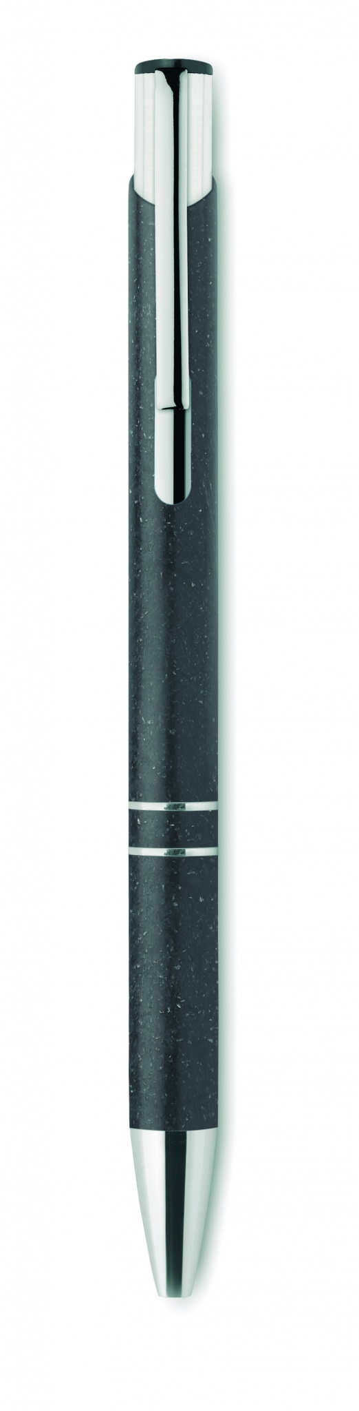 50% nisukõrrest ja 50% ABS materjalist, hõbedaste kinnitustega nööbist pastapliiats. Sinine tint.