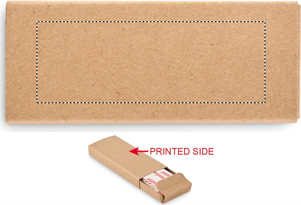 15-osaline plaastrite komplekt taaskasutatud paberist karbis. Šveitsis pole müügil.