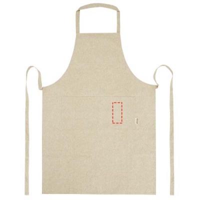 Põll 200 g/m² taaskasutatud puuvillasest polüestri segust. Sellel on 2 kõrvuti asetsevat taskut, mille kombineeritud suurus on 45 x 20 cm, ja 1-meetrine lipsukinnis. Taaskasutatud puuvilla toodetakse tarbimiseelsetest jäätmetest, mis tekivad tekstiilitehastes lõikamisprotsessi käigus. Taaskasutatud puuvilla olemuse tõttu võib esineda väga väikest värvimuutust. See funktsioon lisab selgelt autentsema välimuse. Kaelarihma pikkus: 55 cm.