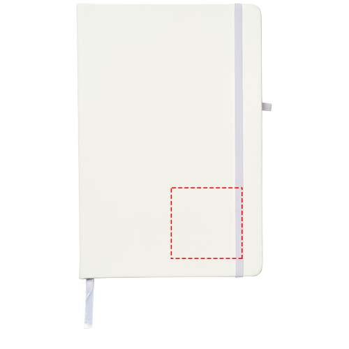 A5 võrdlussuuruses märkmik sobiva värvi elastse sulguri, pliiatsi aasa ja paelaga. Sisaldab 96 lehte 70g/m2 joonelist paberit. Pehme tunnetusega PU kate.