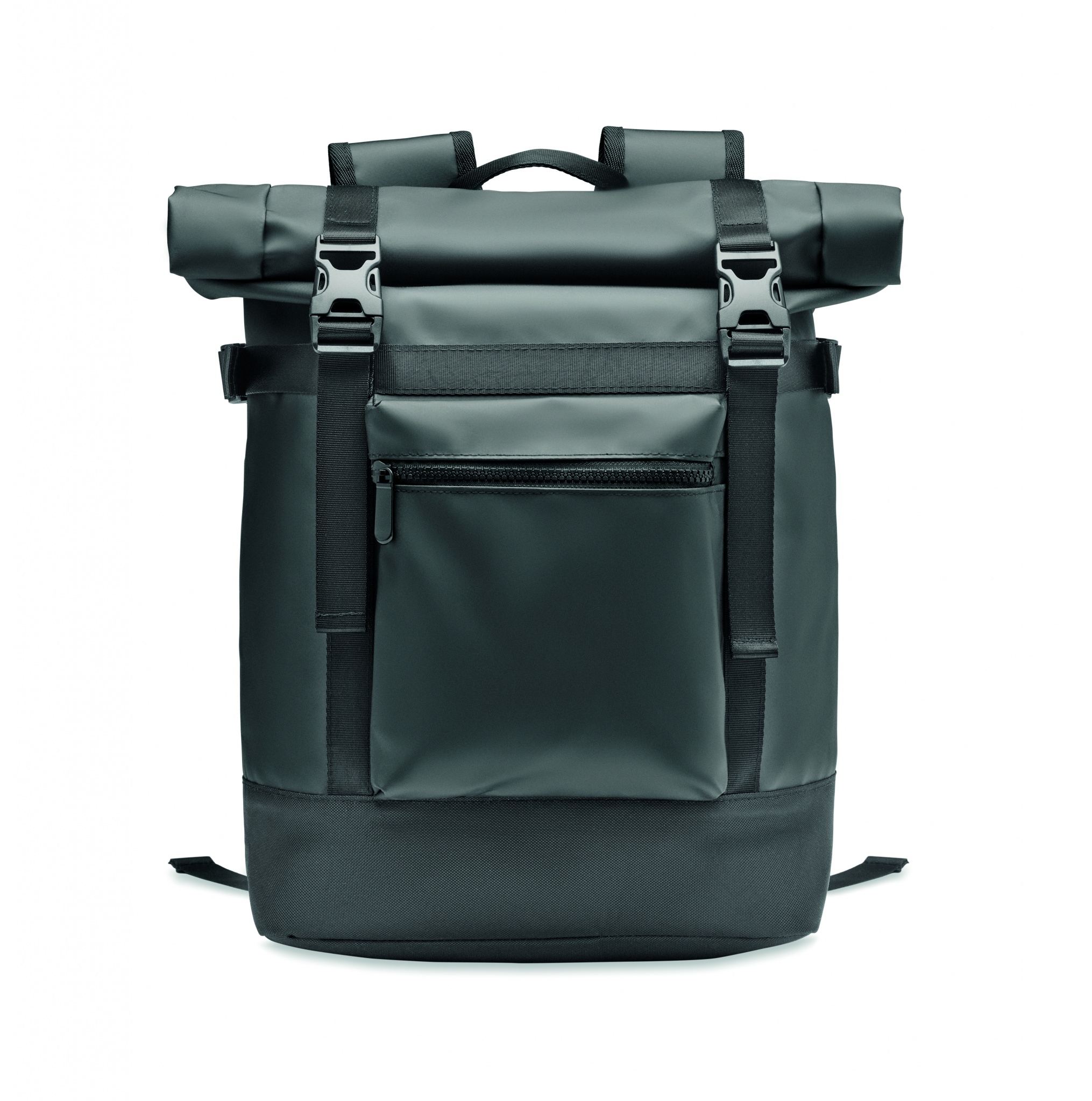 Rolltop 50C presendist seljakott polsterdatud selja-, põhja- ja õlarihmade tugevdusega. Ees lukuga taskud.
