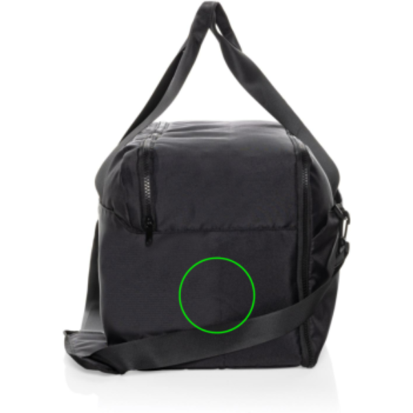Standardne Swiss Peak nädalavahetusekott 15"6-tollise sülearvuti sahtliga ärireiside jaoks. Valmistatud Aware™ RPET 300D/150D abil. Põhisahtlis on lisataskud ja lukuga tasku sees. Jäigad tõmblukud