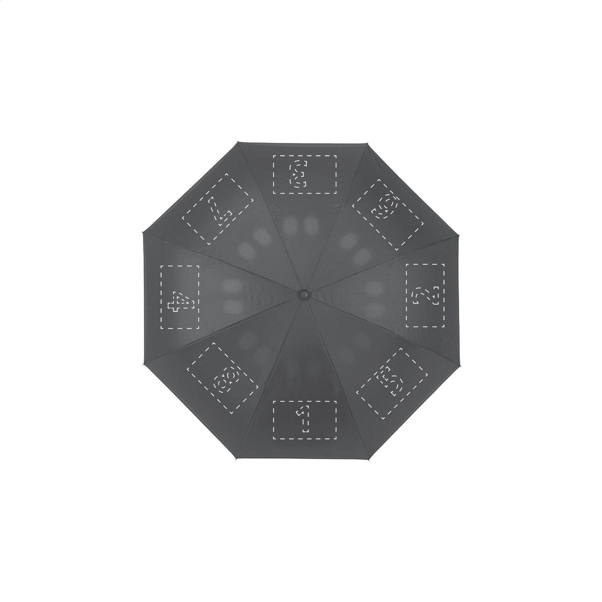 Suur, uuenduslik tagurpidi vihmavari kahekordsete 190T pongee troppidega. Spetsiaalne materjal, mis kiirendab kuivamist. Võib kuivada seistes. Sulgub automaatselt, avaneb käsitsi. Ideaalne autosse sisenemisel ja sealt väljumisel. Tuulekindla süsteemiga metallraam ja ergonoomilise kujuga käepide koos kanderihmaga.