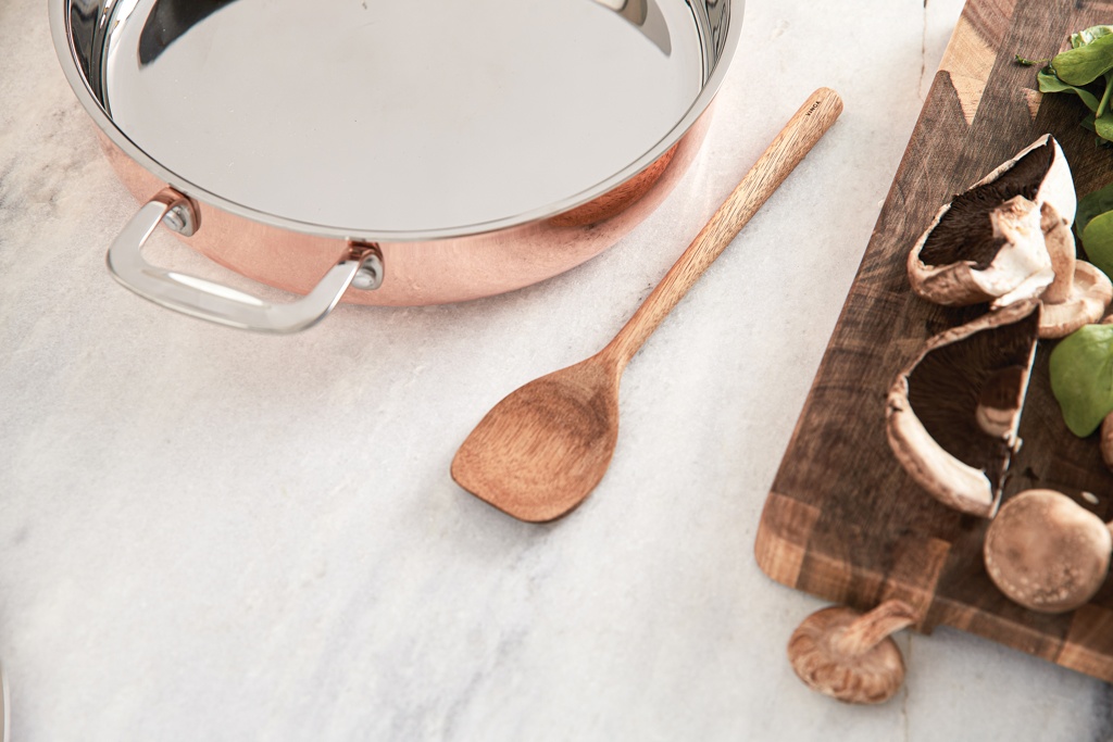 Eksklusiivne kolmekihiline vasest praepann kaanega. Esimene kiht on välispind vasest ja sisemus koosneb alumiiniumkihist ja roostevaba terase kihist, mis muudavad selle puhastamise lihtsaks. Vase ja alumiiniumi kihid juhivad hästi soojust, võimaldades pannil kiiresti ja ühtlaselt kuumeneda. Põhi on tugevdatud paksema roostevabast terasest plaadiga, mis võimaldab kasutada induktsioonpliidil. Pannil on roostevabast terasest käepide, mis jääb küpsetamise ajal jahedaks. Sobib igat tüüpi pliitidele.