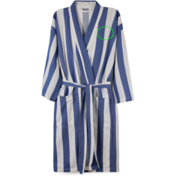 Too see pehme ja mugav Türgi hommikumantel randa või naudi seda lihtsalt kodus. Valmistatud kergest ja õhulisest 200 gsm segust, ühendab see puuvilla mugavuse ja polüestri kiiresti kuivava eelised. Kahevärvilise triibulise mustriga klassikalises stiilis kujundatud sellel on kena krae, esitaskud, 3/4 varrukad ja vöörihm, mis tagab täiusliku istuvuse. GRS-i (Global Recycled Standard) sertifitseeritud GRS-sertifikaat tagab, et kogu taaskasutatud materjalide tarneahel on sertifitseeritud. Taaskasutatud kogusisaldus põhineb toote kogumassil. See toode sisaldab 69% GRS sertifikaadiga taaskasutatud puuvilla ja 29% GRS sertifikaadiga taaskasutatud polüestrit.