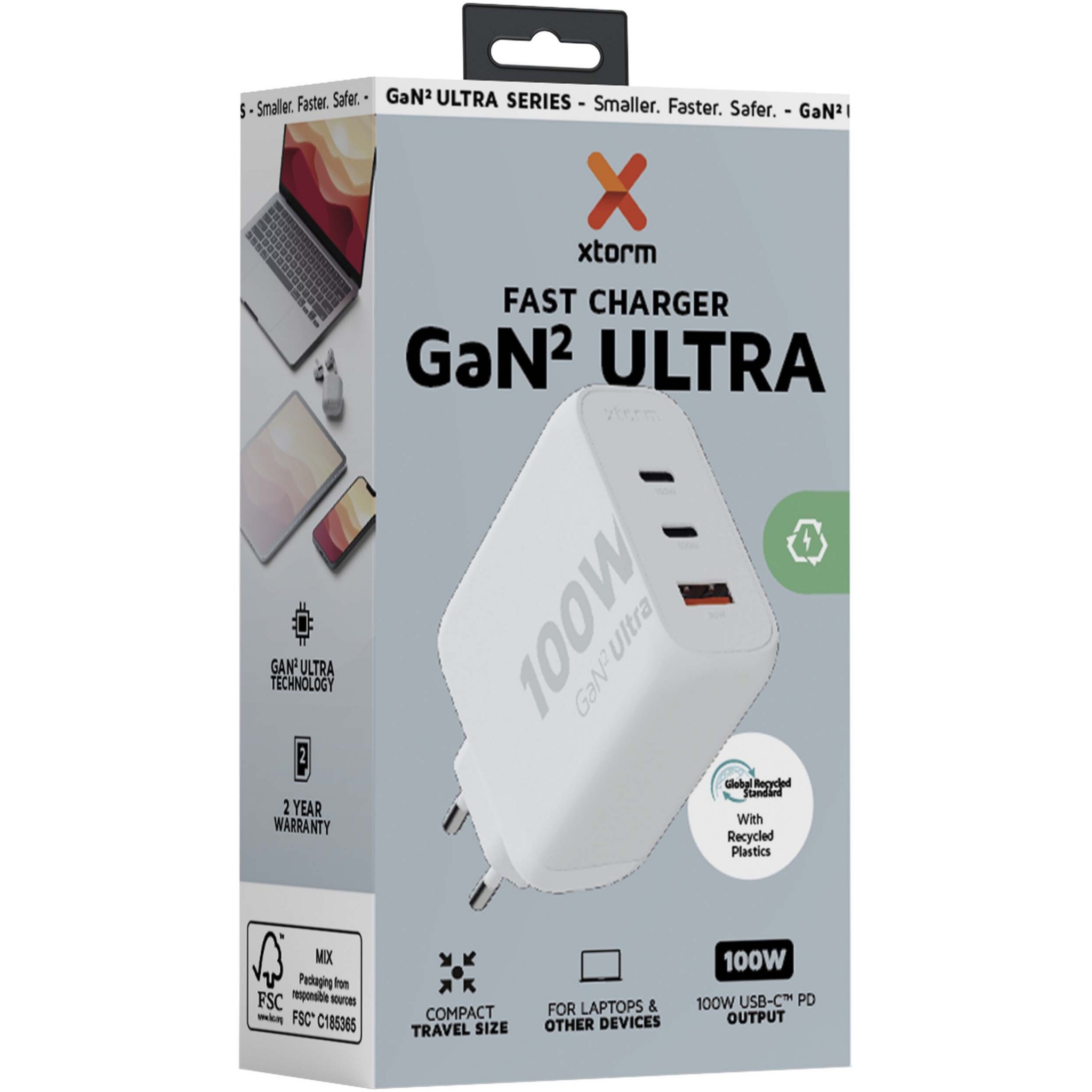 Xtorm XEC100 GaN² Ultra 100 W seinalaadija, Valge