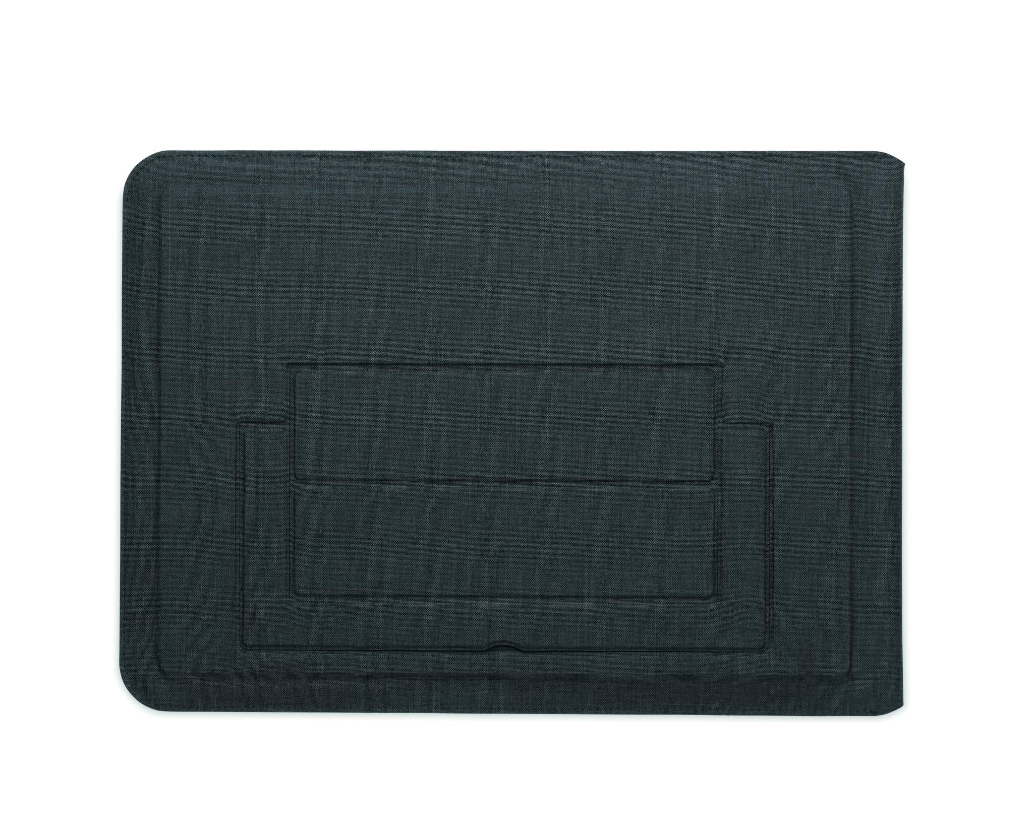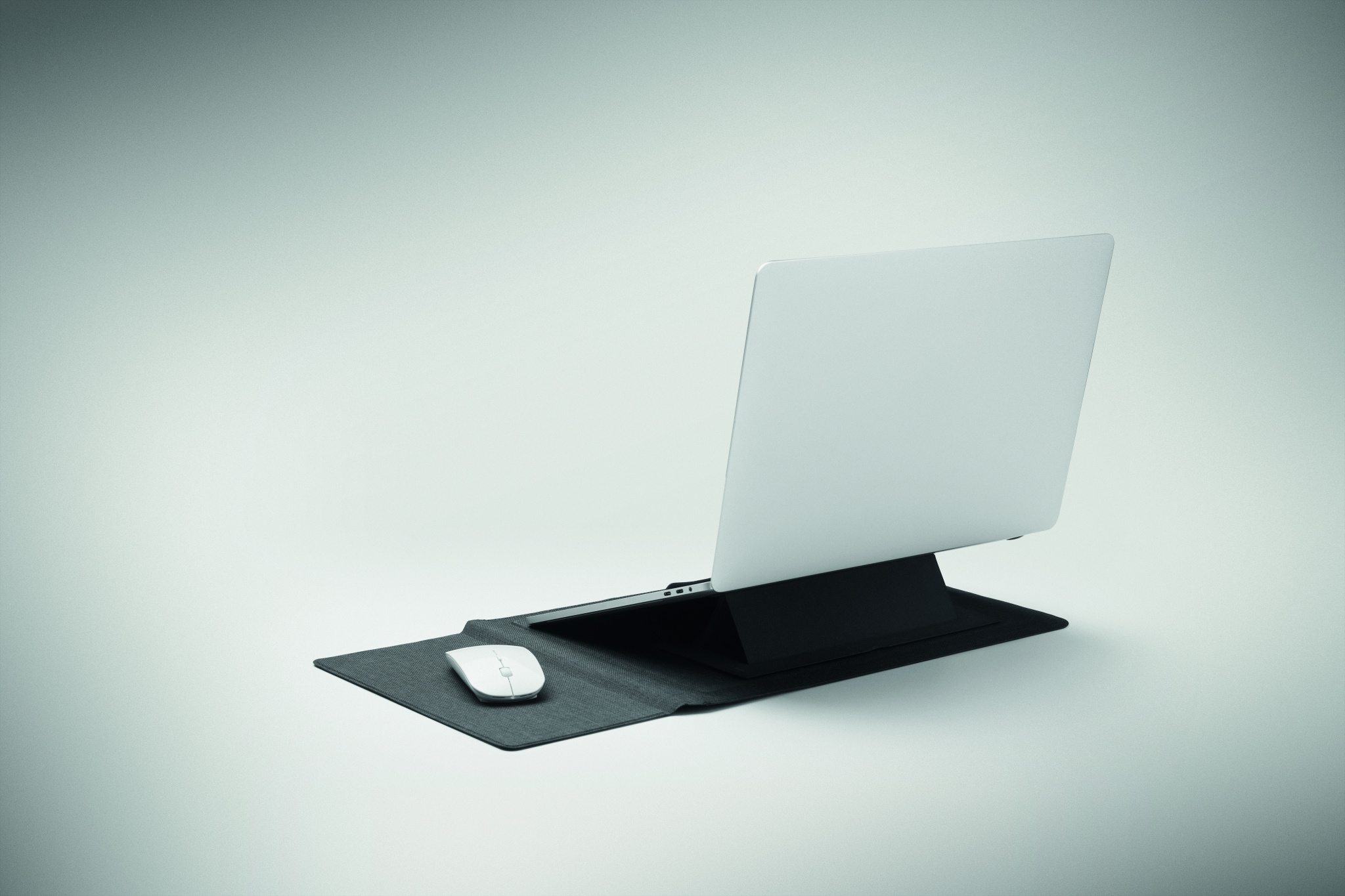 3-in-1 16 tuuman RPET-läppäritasku, jossa on kannettavan tietokoneen teline ja hiirimattotoiminto avattaessa.