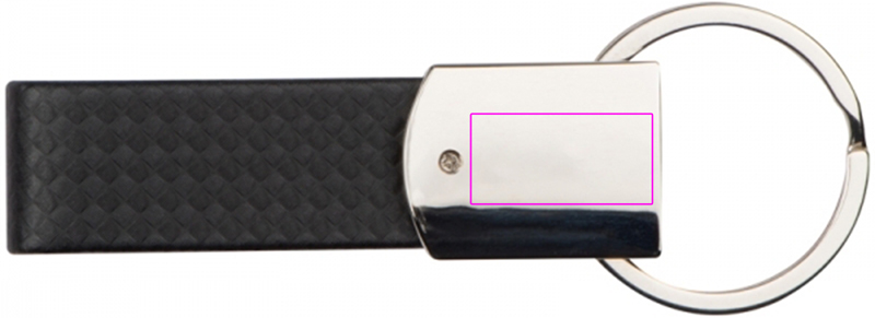 Tyylikäs metallinen avaimenperä hiilikuituisella hihnalla. Logosi kaiverretaan kromatulle pinnalle.