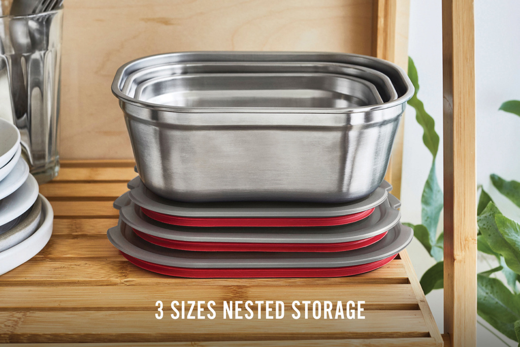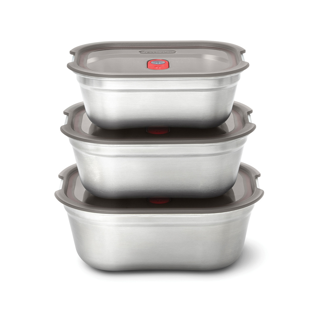 Tämä kolmen ruostumattomasta teräksestä valmistetun ateriarasian setti on suunniteltu jokapäiväiseen käyttöön – kevyet, kestävät ja tiiviit rasiat sopivat niin aamiaiselle, lounaalle kuin välipaloillekin. Ne ovat ihanteellisia ruoansäilytykseen, eväisiin tai uunista pöytään -aterioihin. Jokaisessa rasiassa on innovatiivinen, mikroaaltouuninkestävä teräsrakenne ja tyhjiötiivis, vuotamaton kansi, joka pitää ruoan tuoreena pidempään. Läpikuultavan kannen ansiosta näet helposti, mitä sisällä on. Korkealaatuinen teräspohja kestää konepesun, pakastuksen ja uunin (kansi ei kestä uunia). Irrotettavat tiivisteet tekevät puhdistuksesta helppoa. Älykäs kansiventtiili mahdollistaa ruoan kuumentamisen mikroaaltouunissa ilman kannen poistamista – nopeammin ja siistimmin. Rasiat ovat pinottavia ja sisäkkäin säilytettäviä tilaa säästäen. BPA-vapaat materiaalit tarjoavat fiksua toiminnallisuutta jokaiseen ateriaan.