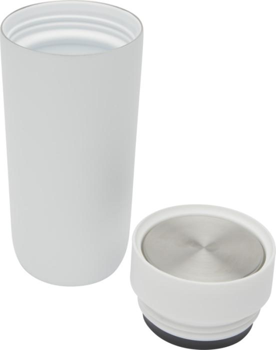 Ensiluokkainen mukaan otettava juomalasi, jossa on kätevä ruostumattomasta teräksestä valmistettu avausmekanismi, joka mahdollistaa käytön yhdellä kädellä. RCS-sertifioitu ruostumattomasta teräksestä valmistettu runko kestävällä tehopinnoitteella. Kansi on valmistettu RCS-sertifioidusta ruostumattomasta teräksestä ja PP-muovista. Kuparipinnoitus ja keraaminen sisus. Sopii useimpiin tavallisiin auton mukinpidikkeisiin. Pitää juomat kuumana 12 tuntia tai kylmänä 24 tuntia. Toimitetaan kierrätetystä kartongista valmistetussa lahjapakkauksessa. Tilavuus: 350 ml.