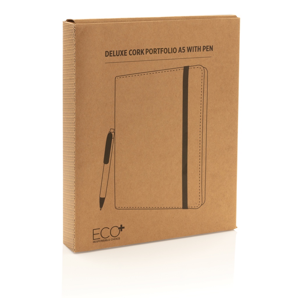 Logo trade mainoslahja ja liikelahja tuotekuva: Deluxe korkki portfolio A5 kynällä