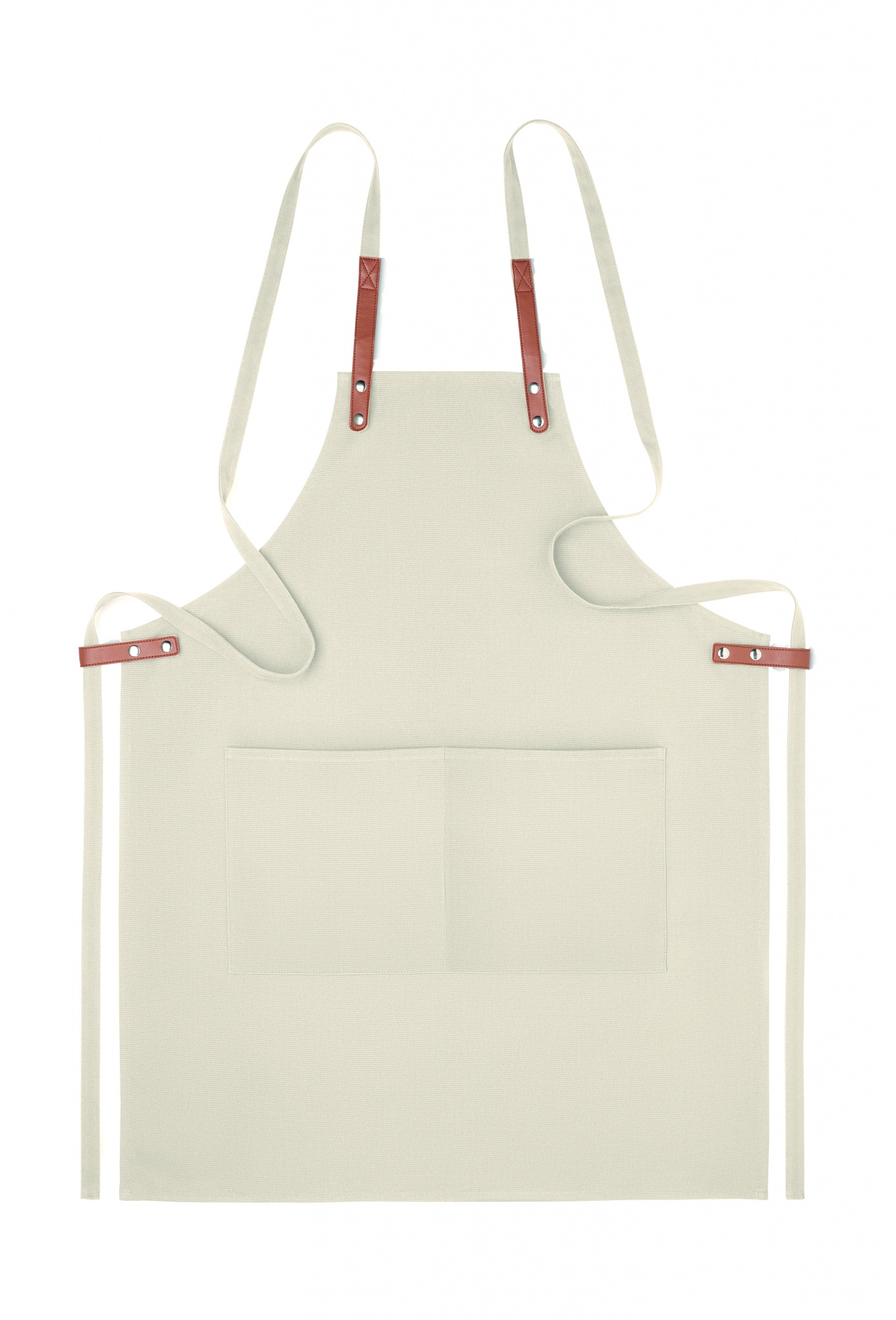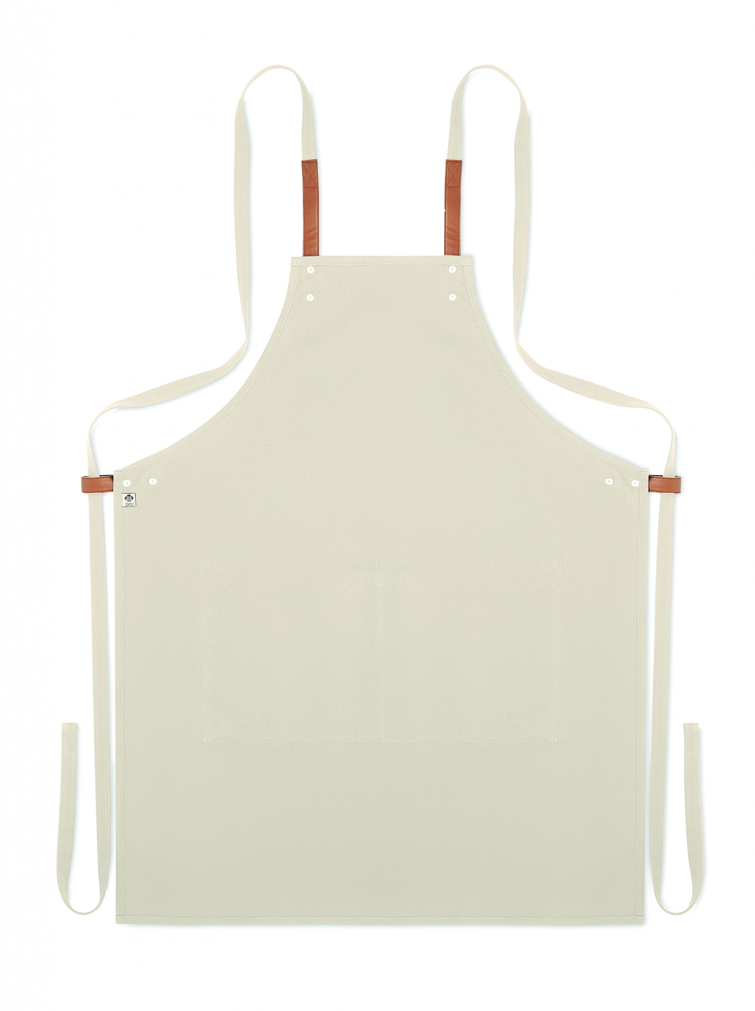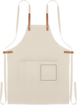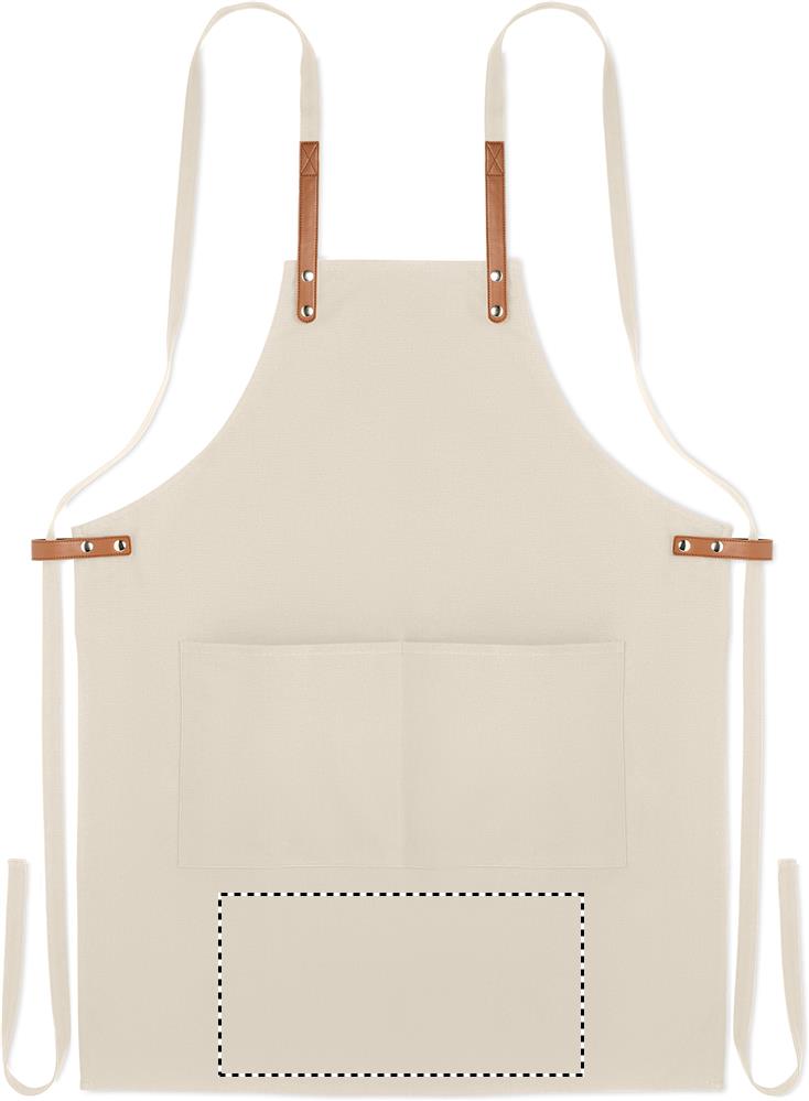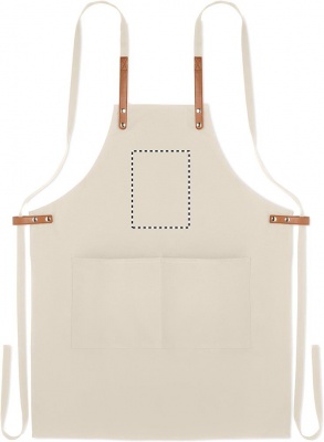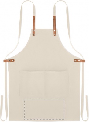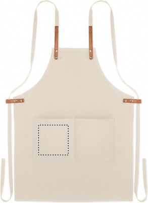 Säädettävä ja 2 etutaskulla varustettu 340 gr/m² orgaanisesta puuvillasta valmistettu esiliina.