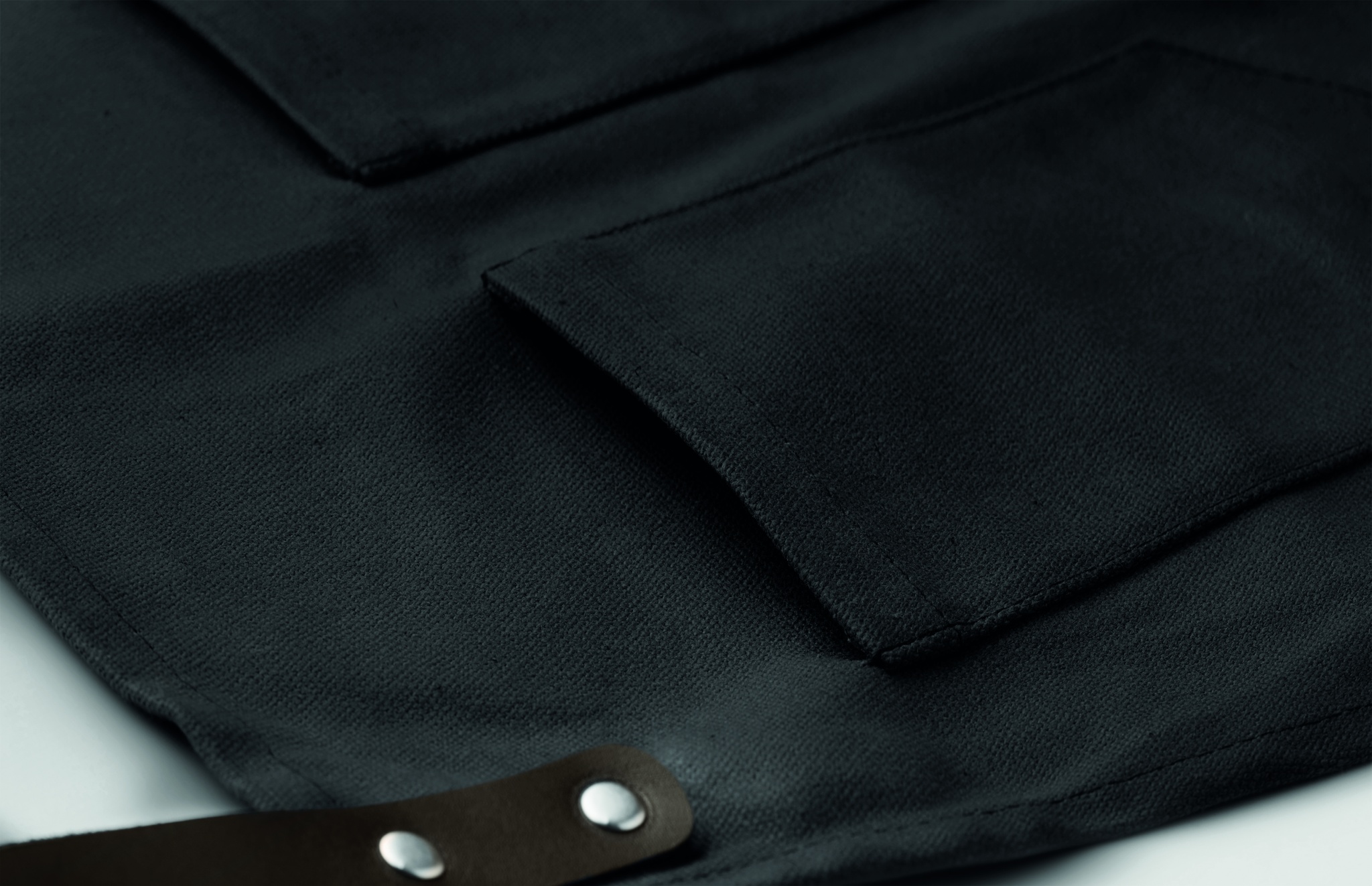 Esiliina vahattua kangasta, nahkaisilla yksityiskohdilla. Säädettävä hihna, 2 rintataskua ja yksi isompi tasku. 12 oz vahattua kangasta.