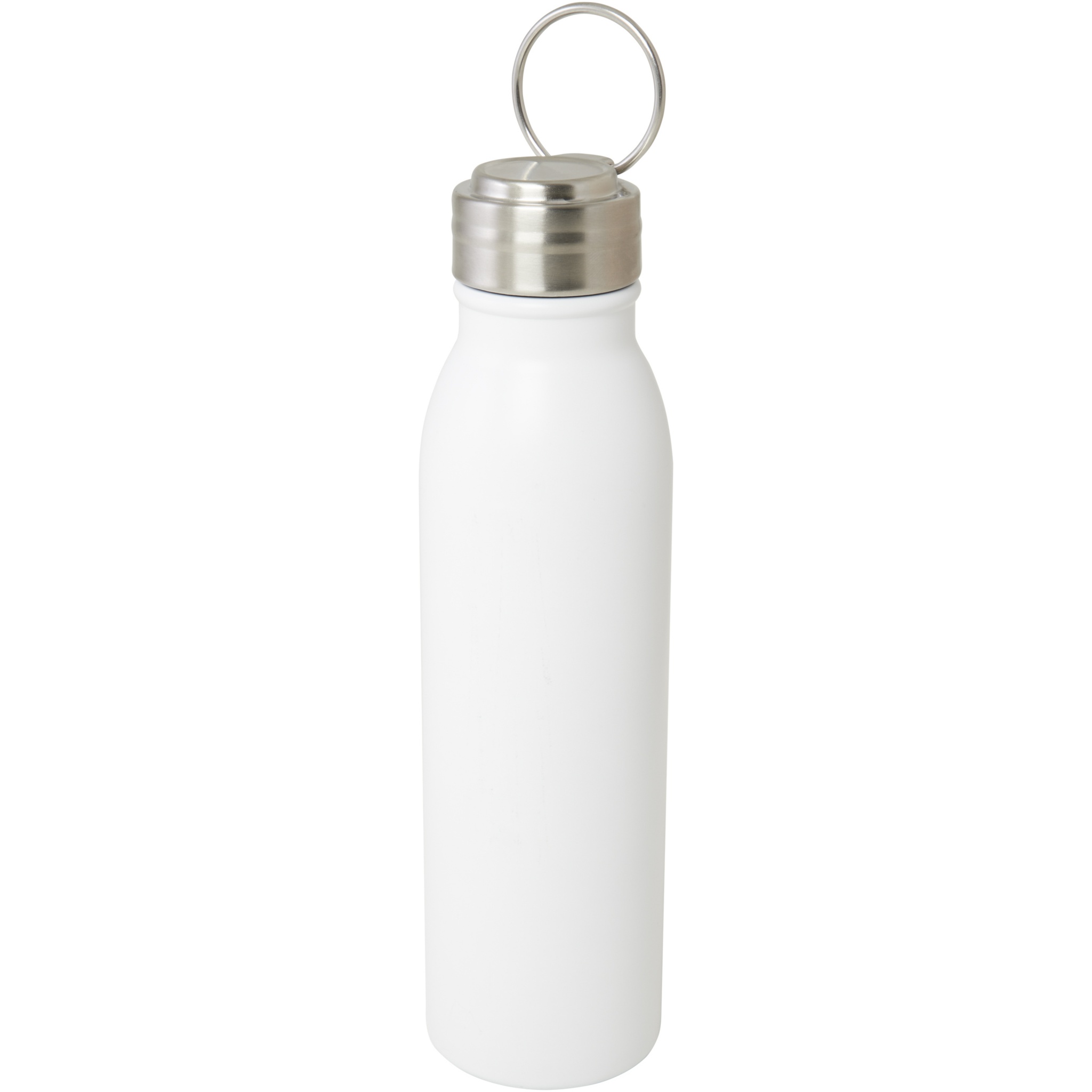 RCS-sertifioidusta ruostumattomasta teräksestä valmistettu yksiseinäinen vesipullo, jossa on kierrettävä, roisketiivis kansi ja kestävä sinkkiseoksesta valmistettu kantolenkki. BPA-vapaa, testattu ja hyväksytty Saksan elintarviketurvallisuuslainsäädännön (LFGB) mukaisesti. Testattu ja hyväksytty ftalaattipitoisuuden suhteen REACH-määräysten mukaisesti. Sopii useimpiin tavallisiin auton mukinpidikkeisiin. Tilavuus on 700 ml. Suositellaan pestäväksi käsin. Toimitetaan kierrätetystä kartongista valmistetussa lahjapakkauksessa.