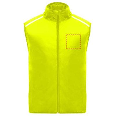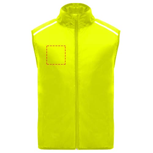 Tuulenpitävä ja hengittävä. Edessä vetoketju yhteensopivalla leukasuojalla. Joustava ommel käsiaukoissa ja alareunassa. Selän alaosa mikrorei'itettyä kangasta. Heijastekuvioita yläosassa, etupuolella ja takana. Tasku kuminauhalla liivin säilyttämistä ja ranteessa kantamista varten. Irrotettava etiketti.