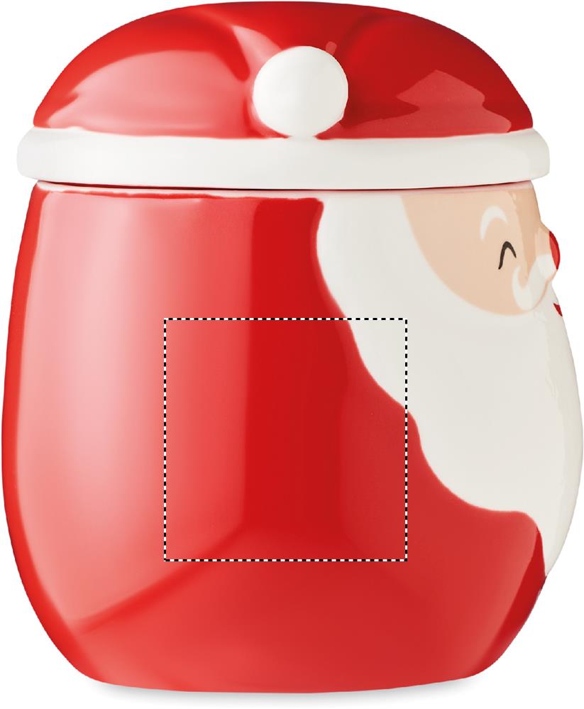 Keraaminen 370 ml muki, joulupukki kuvioinnilla ja kannella.