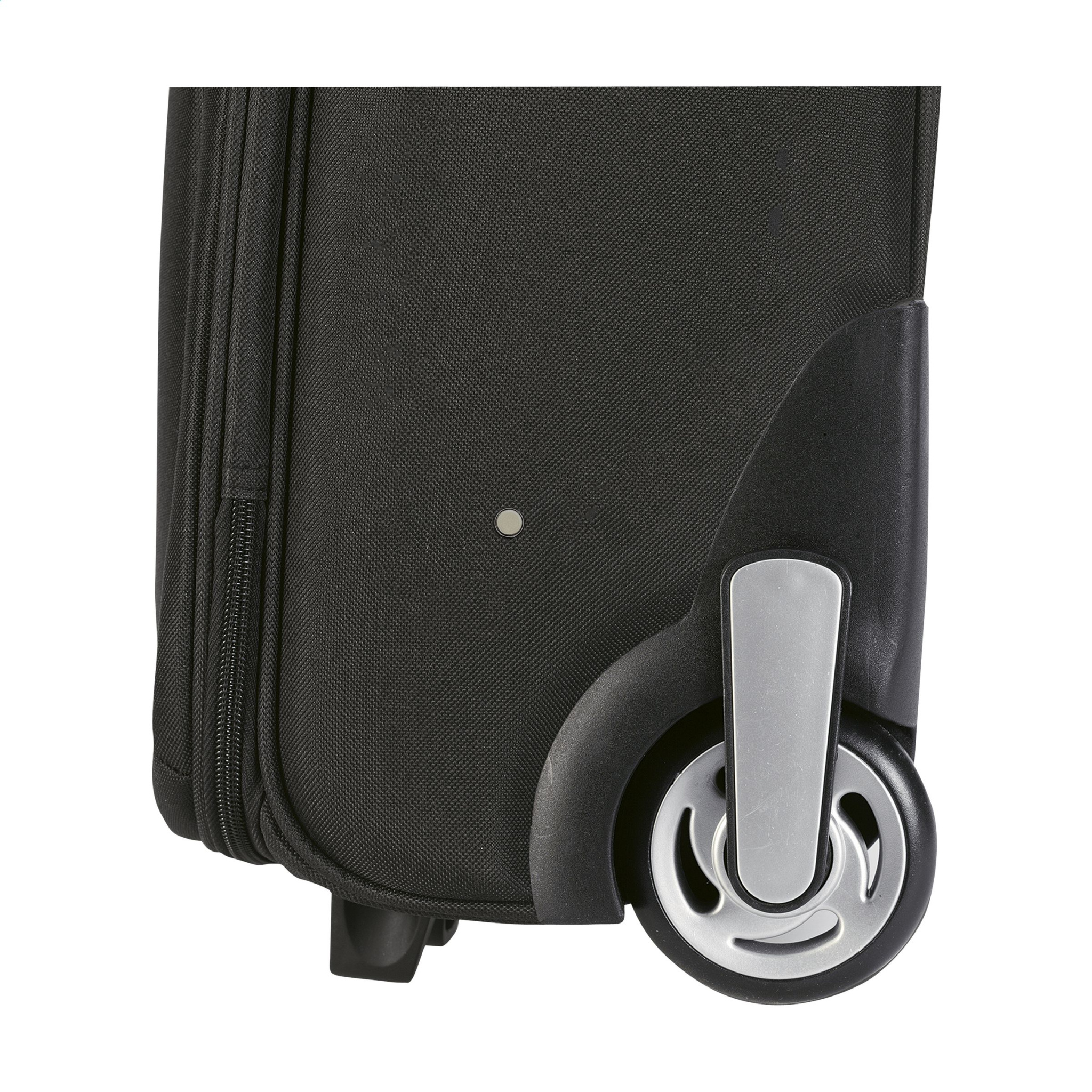 1000D polyesterista valmistettu vaunulaukku, jossa on suuri päälokero, kaksinkertainen vetoketju, useita taskuja, 2 kiinteää pyörää ja teleskooppinen alumiinikahva. Kapasiteetti n. 22 litraa. Jokainen pala lähetyslaatikossa.
