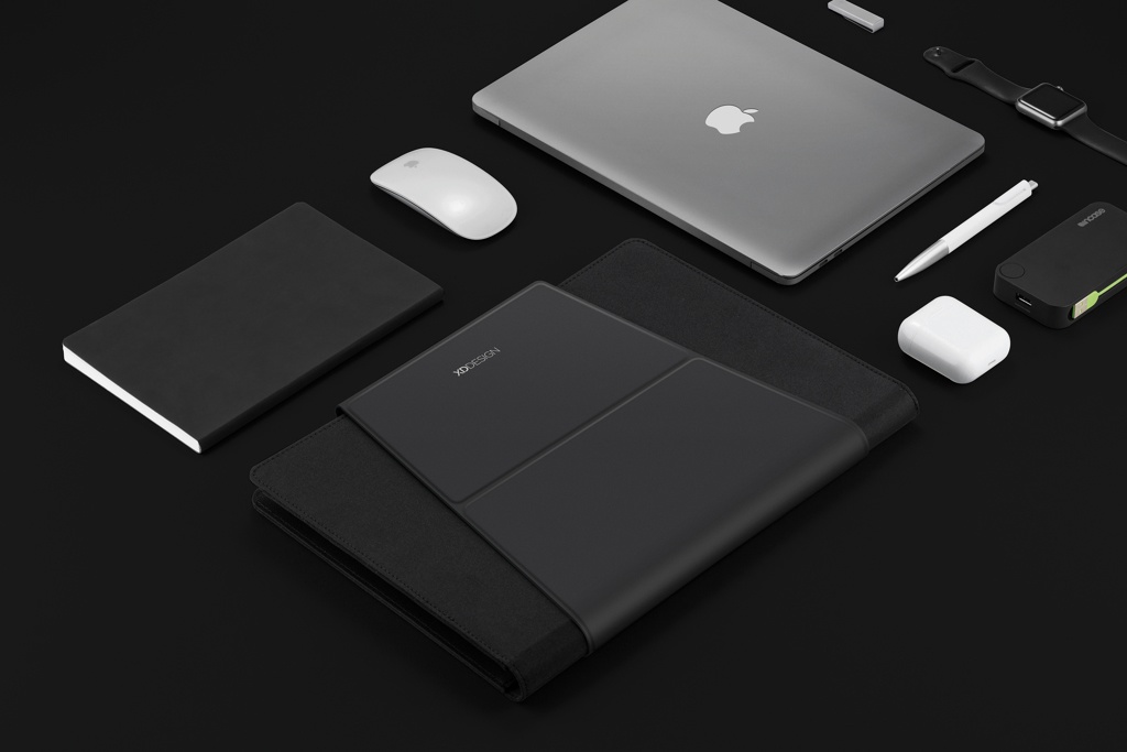 Minne ikinä menetkin, kanna toimistosi mukanasi! Tämä innovatiivisella taitettavalla muotoilulla varustettu kannettava työasema pitää toimistotarvikkeesi kätevästi järjestyksessä. Yksinkertaisesti avaa ja käytä magneettijalustoja asettaaksesi kannettava tietokoneesi oikeaan asentoon tai käytä sisäpintaa hiirimattona. Kannettavaan toimistoon mahtuu 13" kannettava tietokone ja enintään 12,9" tabletti. Rekisteröity design®