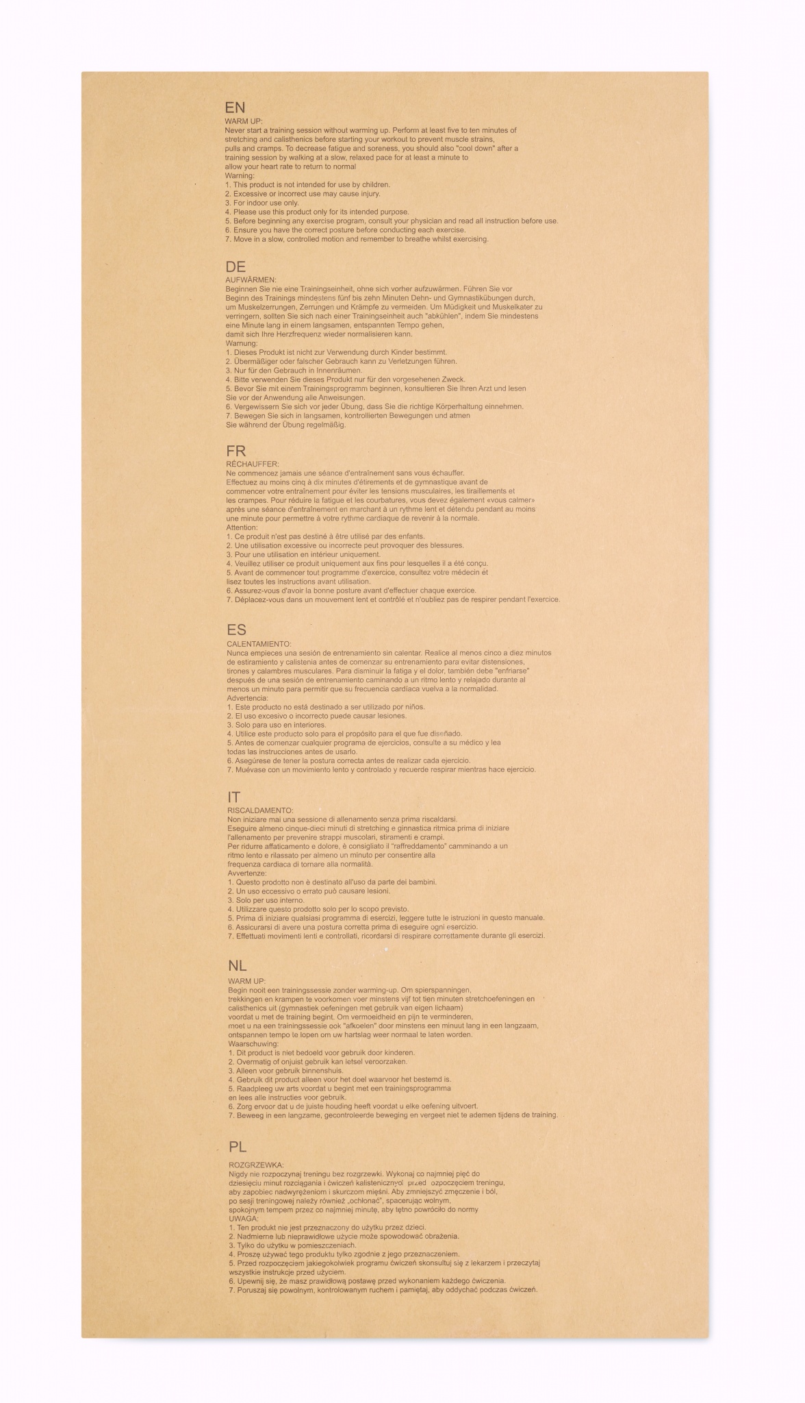 Korkki joogamatto pakattuna paperiseen kääreeseen, paksuus 0,4 cm. Sisältää puuvilla hihnan, maton kantamiseen. Korkki on luonnonmateriaali, strukturaalinen laatu ja pinnan huokoisuus voi aiheuttaa eroavaisuuksia tuotteissa painatuksen jälkeen