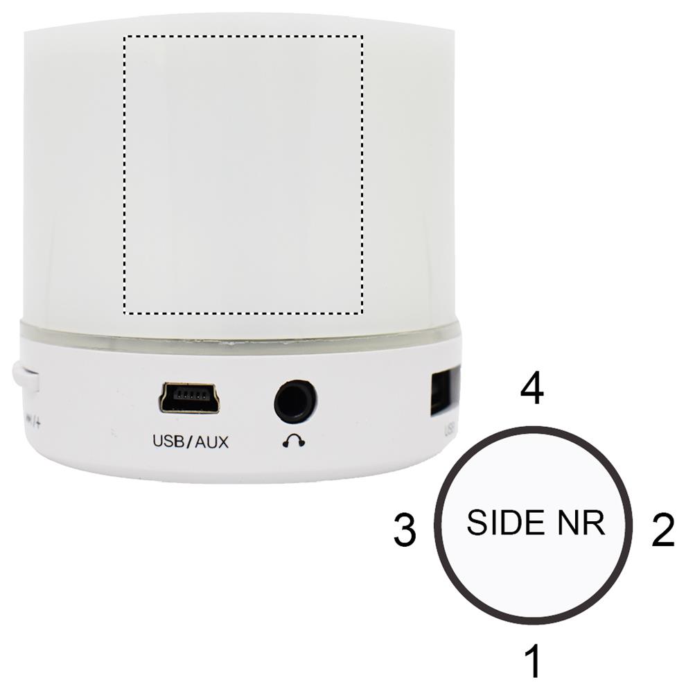ABS 2.1 langaton kaiutin LED merkkivalolla ja 3 väriä vaihtavaa valoa. Sisältää ladattavan 450 mAh litium akun, SD korttiportin ja AUX / USB-kaapelin. Handsfree-puhelutoiminto, lähtövirta 3 W, 4 Ohm. Arvioitu toistoaika 2 tuntia.