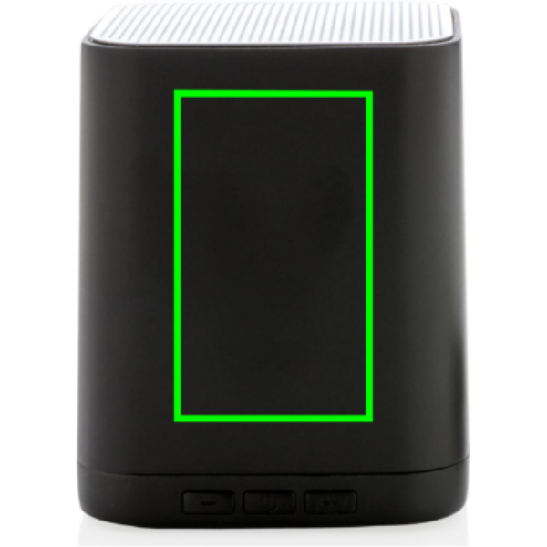 Langaton 3W kaiutin, joka voidaan räätälöidä logollanne ABS pinnalle. Logo valaistuu antaakseen maksimaalisen näkyvyyden brändillenne. Kaiutin käyttää BT 4.2:tä mahdollistaakseen hyvän yhteyden 10 metrin säteellä. Sisäänrakennettu 400 mAh akku mahdollistaa musiikin yhtäjatkoisen soittamisen 4 tuntia kertalatauksella ja uudelleenlataus kestää tunnin.