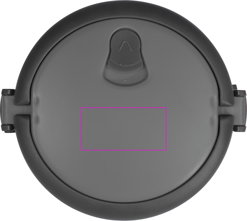 Täydellinen lounaalle, ruostumattomasta teräksestä valmistettu laatikko, jossa on kaksi lokeroa ja muovinen kantokahva. Painamme logosi kanteen.