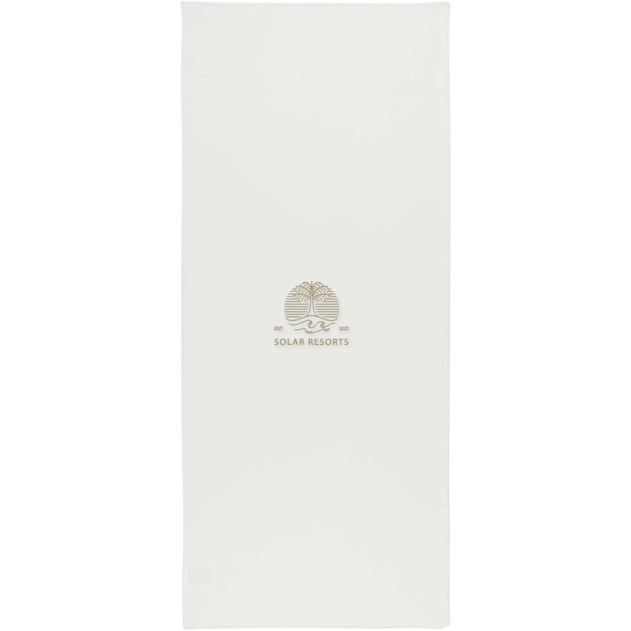 RPET:stä valmistettu Lucas-urheilupyyhe on valmistettu sataprosenttisesti kierrätetystä polyesteristä, ja se tarjoaa pehmeän ja imukykyisen pinnan, joka on ihanteellinen urheilutreeneihin tai ulkoiluun. Materiaalin paino 140 g/m², kestävä ja mukavan kevyt. Pyyhkeessä on käytännöllinen nyöri sekä pyyhkeen että pussin kiinnittämistä varten, minkä ansiosta sitä on helppo kuljettaa ja säilyttää. Mukana toimitetaan kuitukangaspussi (11 x 15,5 cm), joka on myös valmistettu sataprosenttisesti kierrätetystä polyesterista. Pyyhkeen koko: 30 x 80 cm.