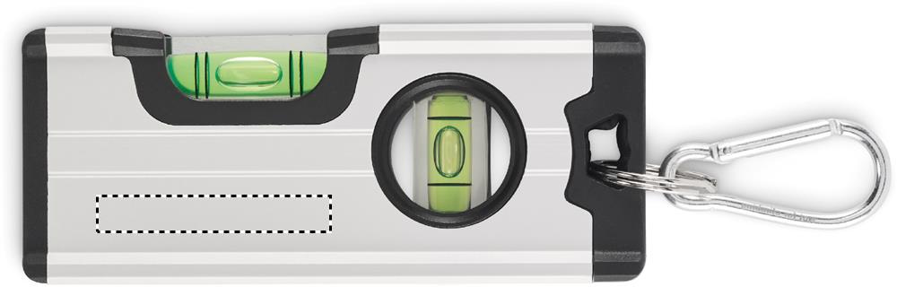 Minimagneettinen kaksoisvesivaaka alumiinikotelossa karabiinihaarukalla. Karabiini ei ole kiipeilyyn (ei-ammattikäyttöön).
