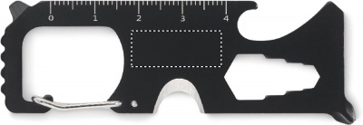 Ruostumattomasta teräksestä valmistettu monitoimityökalu taskukokoisena. 8 toimintoa. Sisältää: hammassaha, lankaleikkuri, jakoavain, Phillips-ruuvimeisseli, urainen ruuvimeisseli, mitta-asteikko, pullonavaaja ja avaimenperä.