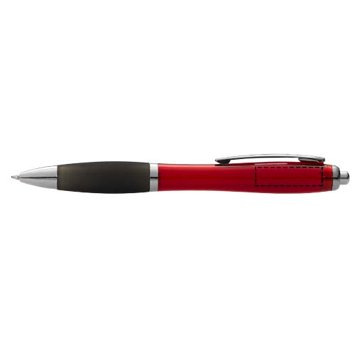 Kuulakärkikynä, jossa on click-toiminto. Pehmeä ote.
