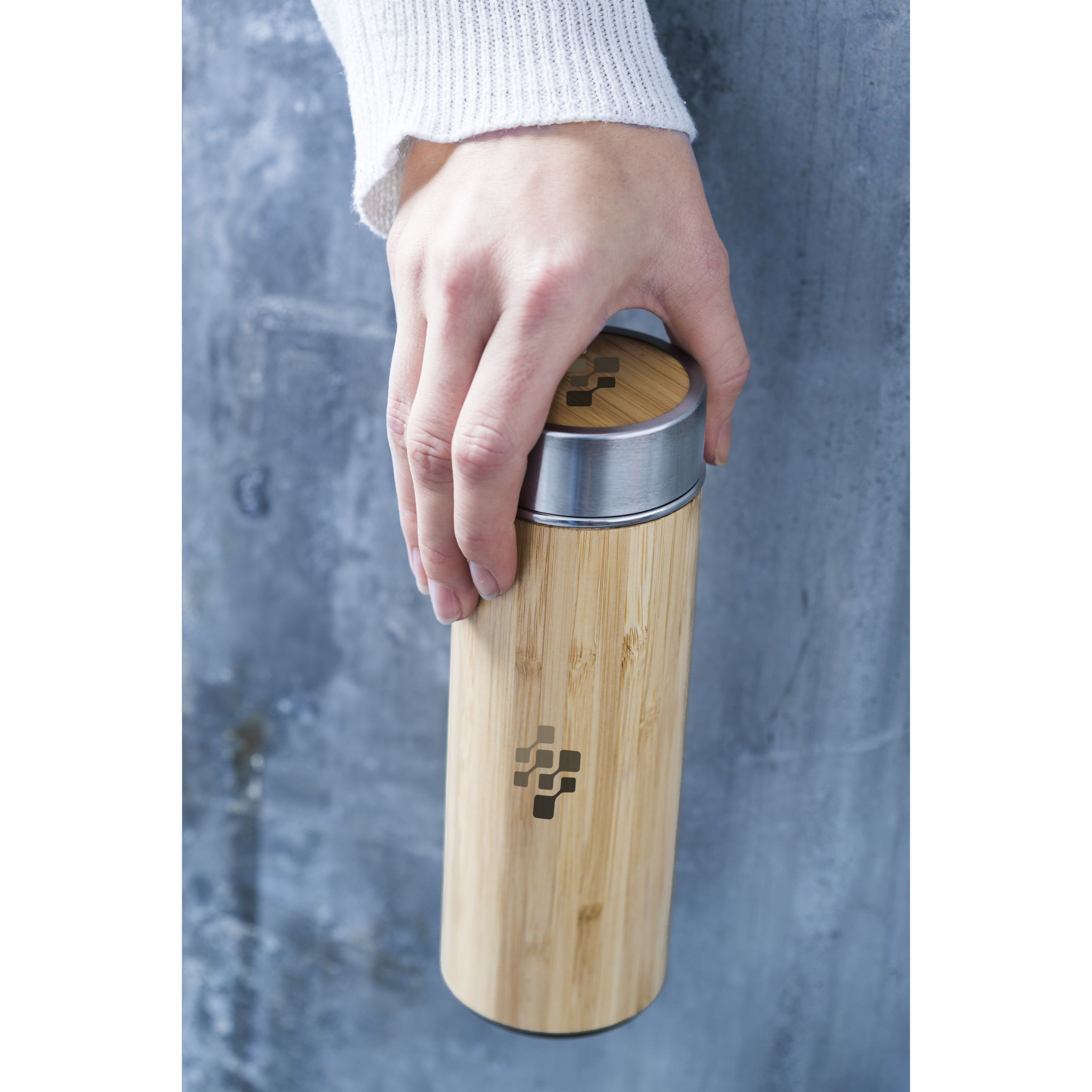 Kaksiseinäinen, vuotamaton, tyhjiöeristetty ruostumattomasta teräksestä valmistettu termopullo/termokuppi bambuviimeistelyllä. Sisältää irrotettavan ruostumattomasta teräksestä valmistetun teesuodattimen. Tilavuus 360 ml. Jokainen tuote on pakattu erikseen.