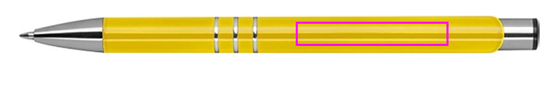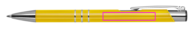 Täysin lakattu metallikuulakynä, jossa on 3 koristerengasta ja suuri kapasiteetti sinikirjoituksella. Logosi kaiverretaan leikkeen oikealle puolelle.