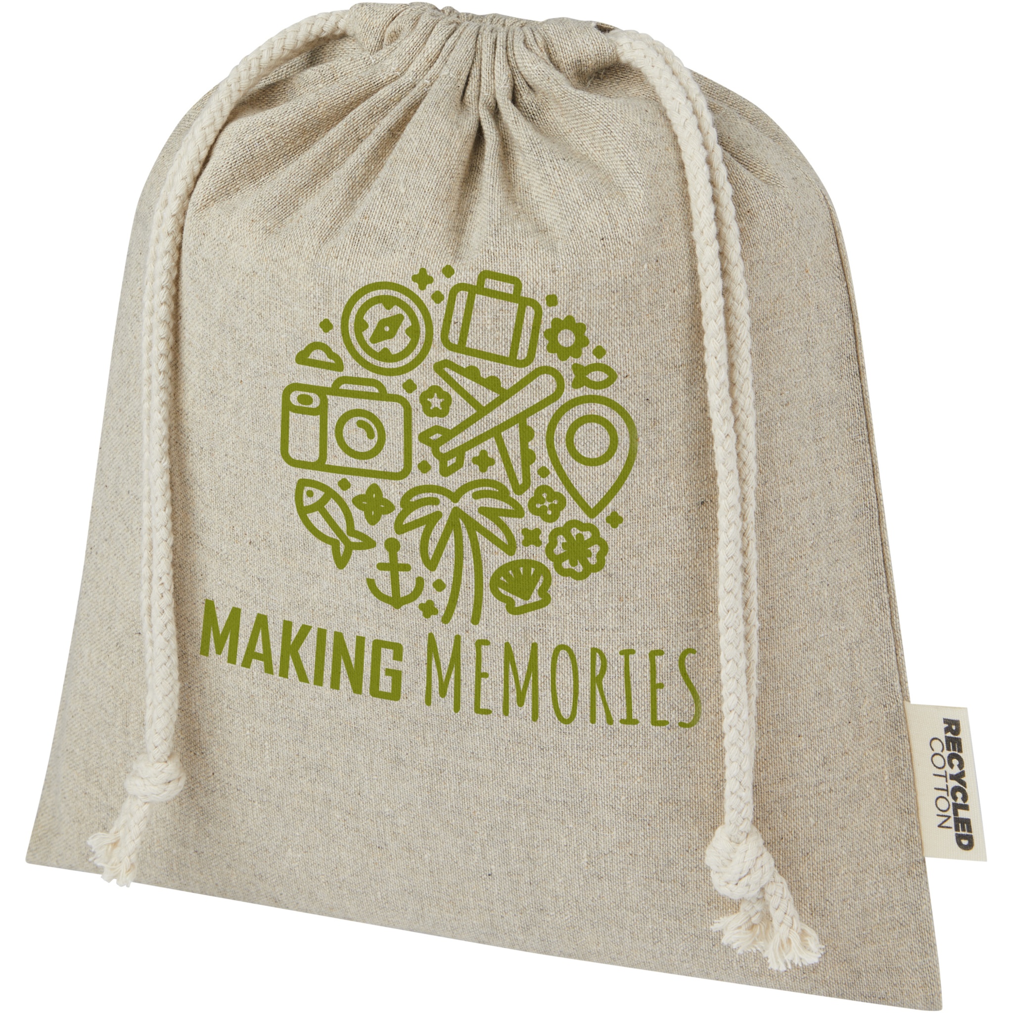 GRS-sertifioidusta kierrätyspuuvillasta valmistettu lahjapussi puuvillaisella kiristysnyörillä. Ihanteellinen lahjapussiksi tai tavaroiden säilyttämiseen. Varsinaisen tuotteen väri saattaa vaihdella hieman tuotantoprosessin luonteen takia. Koko: 25 x 30 cm.