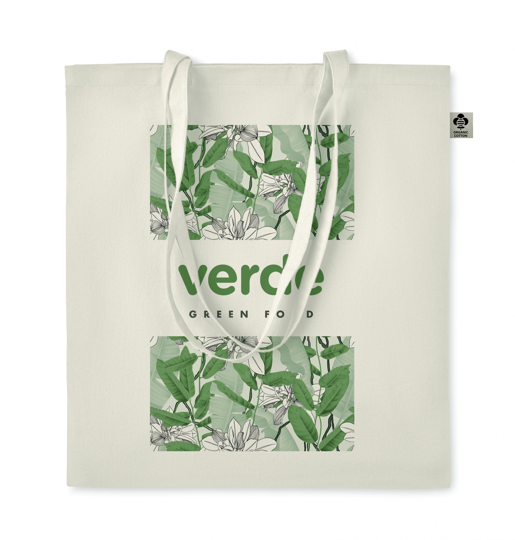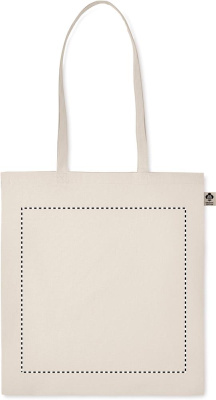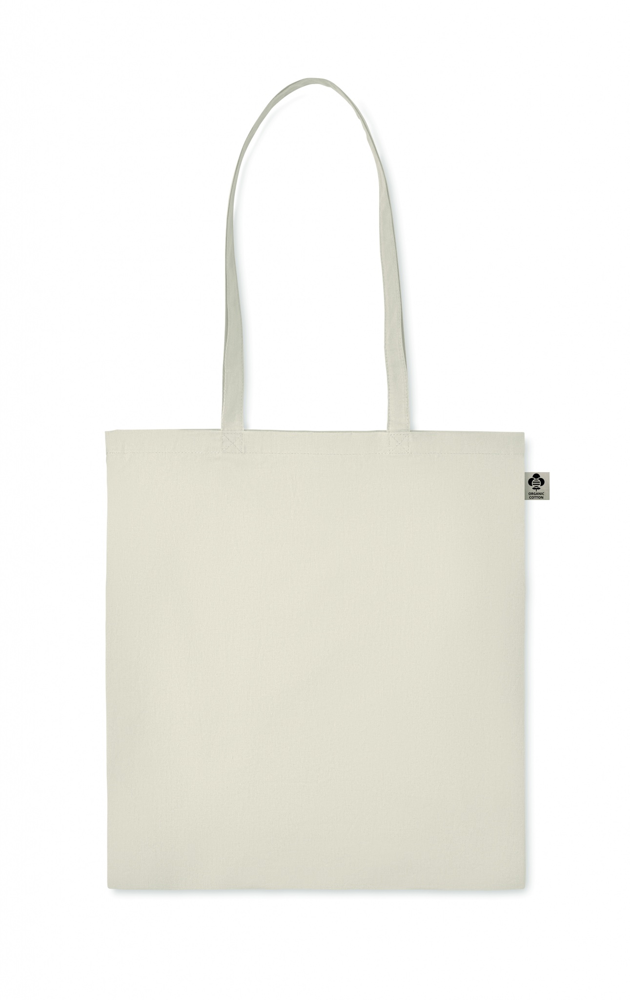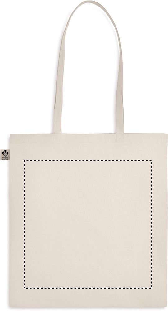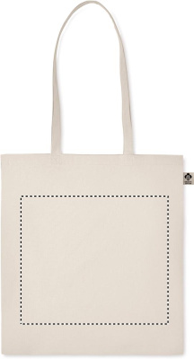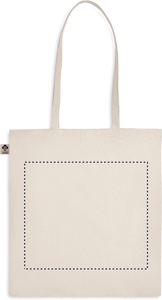 140 gr/m² 100% luomupuuvillasta valmistettu kassi, pitkillä kahvoilla.
