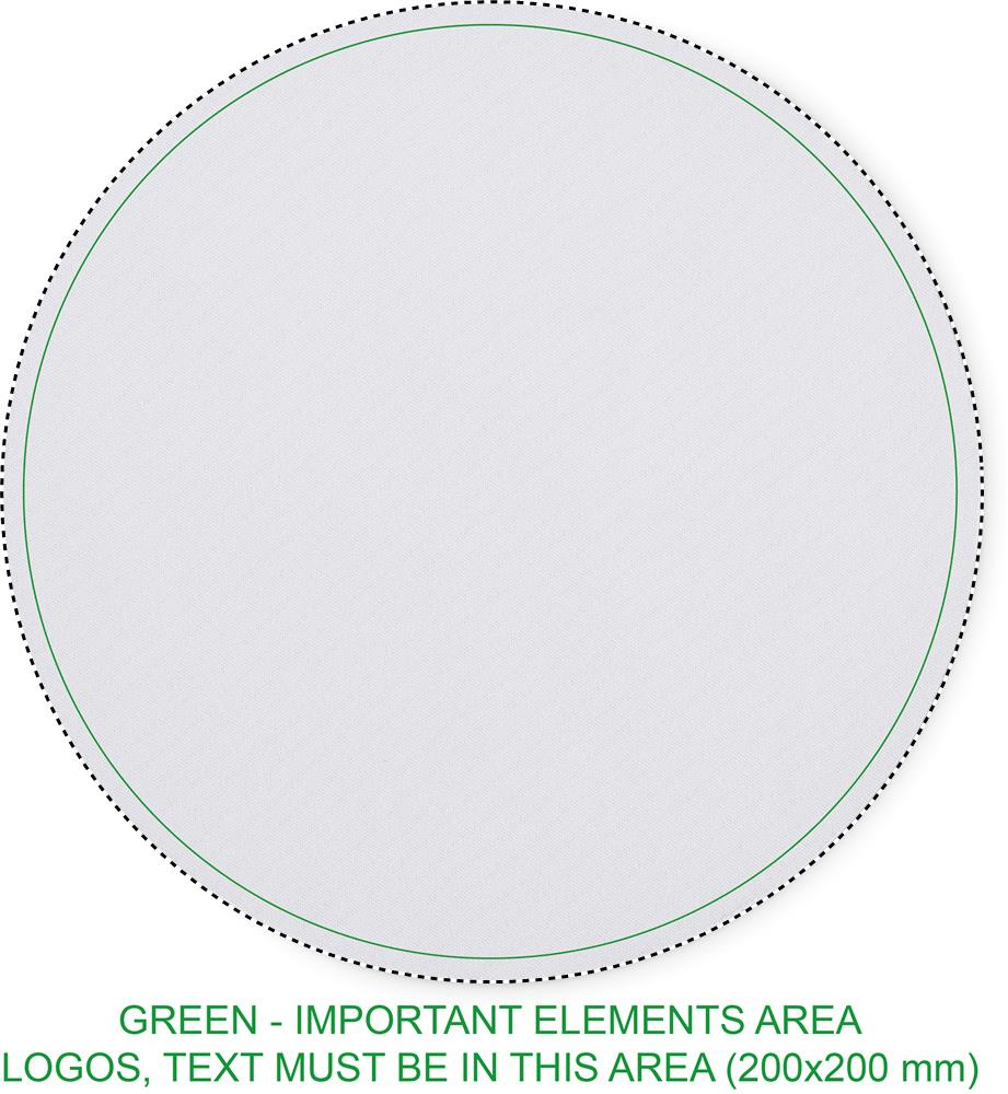 Sublimaatioon tarkoitettu tietokoneen hiirimatto, jossa polyesteripinta ja liukumaton pohja kumia. Halkaisija 21 cm.