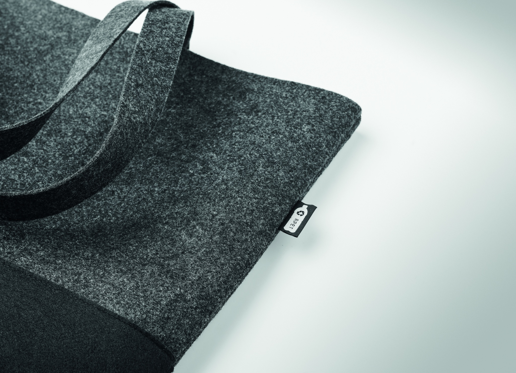 Kaksi sävyinen RPET huopakassi pitkillä kahvoilla.